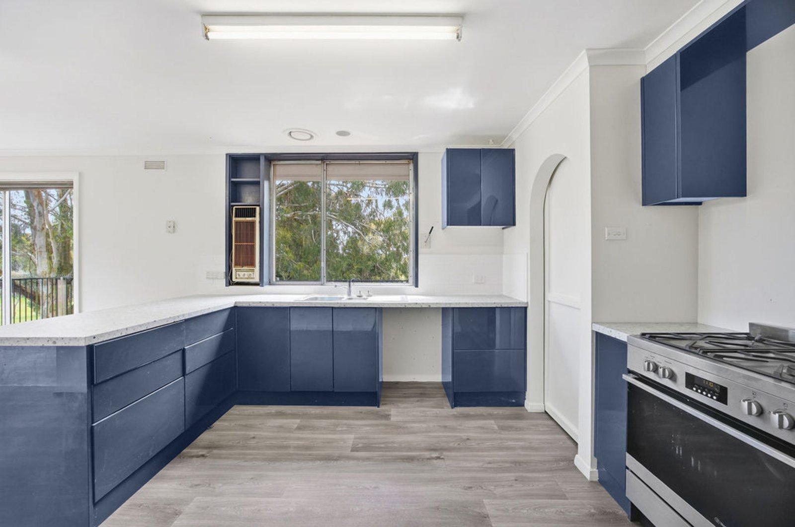 Featuring four spacious bedrooms, two bathrooms and three living zones including a separate rumpus room equipped with a split system there’s room for everyone to unwind. The heart of the home is kept warm and cosy with a wood fire, while the well-appointed kitchen boasts a built-in pantry, 900mm gas oven and stove, making family dinners and gatherings a pleasure.