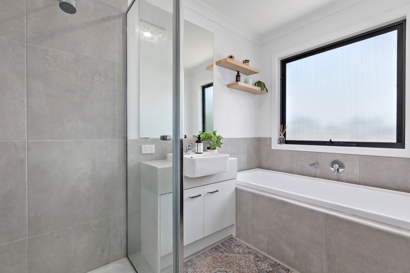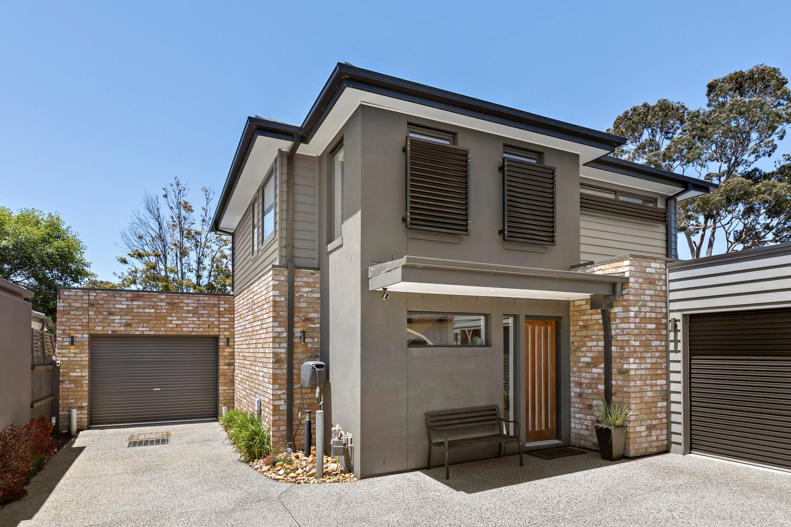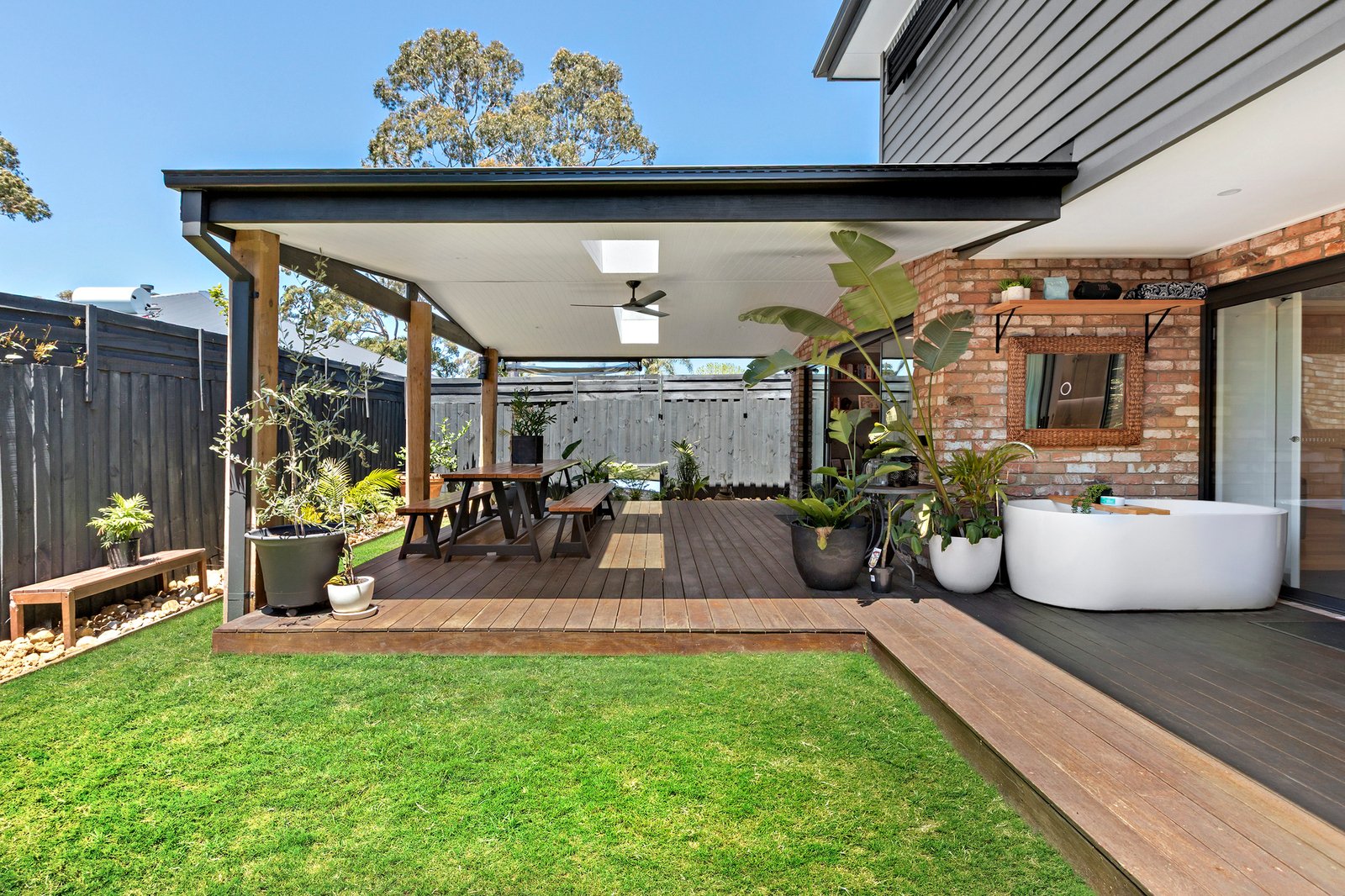 With its striking façade and low-maintenance appeal, this stunning 3 bedroom, 2.5 bathroom, dual living zone residence offers family-sized bliss in a leafy lifestyle pocket. Located just moments from the bay and within strolling distance of schools, local shops, parks and public transport – this stylish rear property is one of only two with no body corporate. You'll love the contemporary stone-topped kitchen with its island bench, large pantry and quality appliances, including a 900mm oven, induction cooktop and double drawer dishwasher, overlooking an inviting open-plan living space with a cosy gas log fireplace and seamless outdoor flow. A natural extension for effortless entertaining, the skylit covered alfresco deck opens to a green lawn and established greenery. The sun-drenched back garden is appealingly private and low-maintenance, complete with roller door access to the garage. Desirably set downstairs behind double doors, the master bedroom is complemented by a stylish ensuite and walk-in robe, enhanced by private access to a luxurious freestanding outdoor bath for the ultimate in resort-style relaxation. Upstairs, you'll find the perfect children's retreat with a spacious second living zone and two robed bedrooms, both sharing the modern main bathroom with separate toilet. Adding further comfort throughout is double glazing, zoned ducted heating and evaporative cooling, along with keyless smart-enabled entry, a water tank, single remote garage plus an extra driveway park – securely tucked behind an automatic front gate. Best of all, get ready to enjoy this family-friendly address! Positioned just metres from St Anne's Primary School and East Seaford Reserve, Belvedere Park Primary School, childcare, bus stops and Austin Road's shops. Within minutes, you'll find the stunning Seaford Wetlands, beachside eateries, pristine stretches of sand and freeway access.