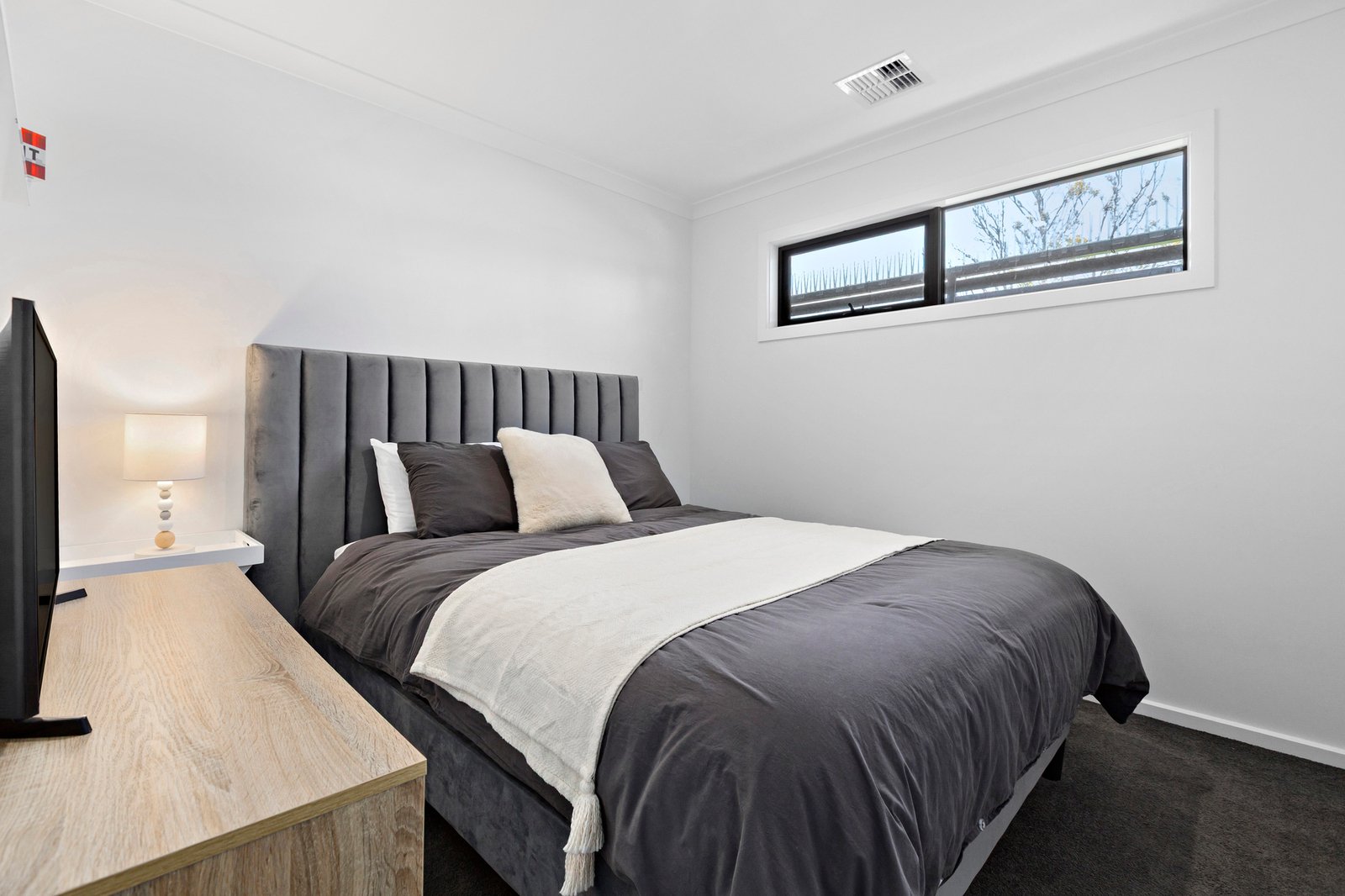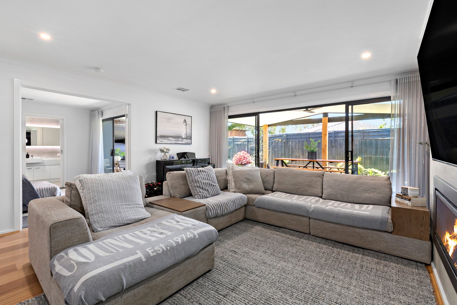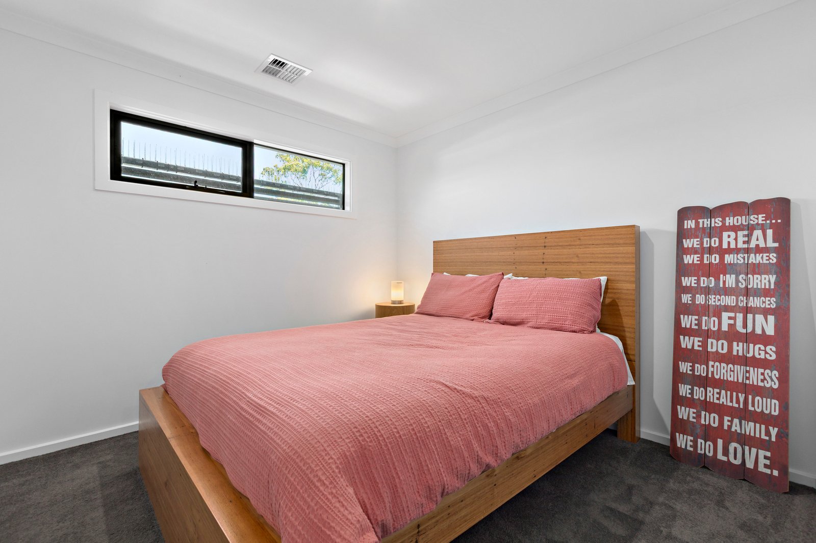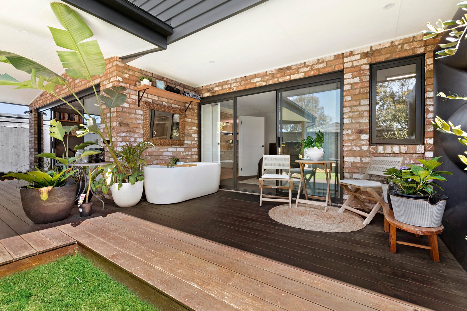 With its striking façade and low-maintenance appeal, this stunning 3 bedroom, 2.5 bathroom, dual living zone residence offers family-sized bliss in a leafy lifestyle pocket. Located just moments from the bay and within strolling distance of schools, local shops, parks and public transport – this stylish rear property is one of only two with no body corporate. You'll love the contemporary stone-topped kitchen with its island bench, large pantry and quality appliances, including a 900mm oven, induction cooktop and double drawer dishwasher, overlooking an inviting open-plan living space with a cosy gas log fireplace and seamless outdoor flow. A natural extension for effortless entertaining, the skylit covered alfresco deck opens to a green lawn and established greenery. The sun-drenched back garden is appealingly private and low-maintenance, complete with roller door access to the garage. Desirably set downstairs behind double doors, the master bedroom is complemented by a stylish ensuite and walk-in robe, enhanced by private access to a luxurious freestanding outdoor bath for the ultimate in resort-style relaxation. Upstairs, you'll find the perfect children's retreat with a spacious second living zone and two robed bedrooms, both sharing the modern main bathroom with separate toilet. Adding further comfort throughout is double glazing, zoned ducted heating and evaporative cooling, along with keyless smart-enabled entry, a water tank, single remote garage plus an extra driveway park – securely tucked behind an automatic front gate. Best of all, get ready to enjoy this family-friendly address! Positioned just metres from St Anne's Primary School and East Seaford Reserve, Belvedere Park Primary School, childcare, bus stops and Austin Road's shops. Within minutes, you'll find the stunning Seaford Wetlands, beachside eateries, pristine stretches of sand and freeway access.