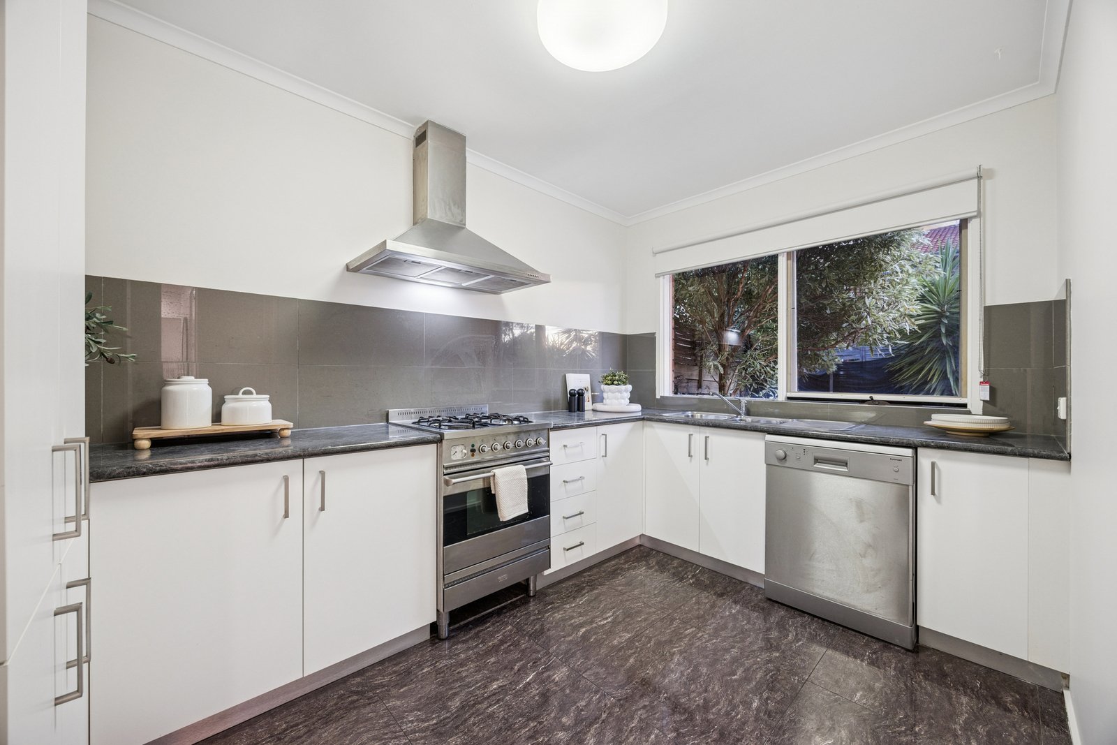 Sized up inside and out, this outstanding streetfront home features sun-soaked north-facing living with a defined dining-area and a quality European appliance kitchen with a stainless-steel dishwasher and gas-appointed Ilve range. Optioned up with a handy separate WC for the light-filled all-white bathroom, and a full-sized laundry for easy living, this reverse-cycle air-conditioned home is styled with dual day-night blinds and built-in robes for both bedrooms.