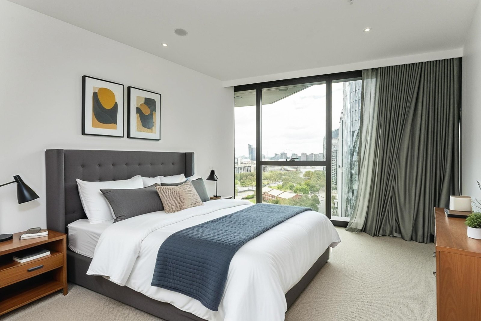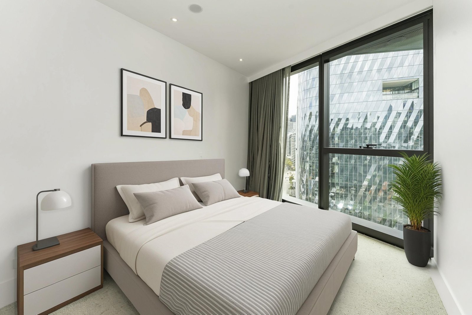Perfectly positioned within Melbourne’s new Maritime Precinct, this stylish two-bedroom apartment blends Docklands waterfront living with the convenience and prestige of Melbourne CBD. Floor to ceiling windows capture sweeping river, harbour and city skyline views, filling the interiors with North facing natural light. A refined layout and premium finishes deliver both comfort and elegance for professionals or families planning an extended stay in one of the world’s most desirable cities. With world class amenities provided by the luxury 5 star 1Hotel and a vibrant precinct at your doorstep, this is one of the area’s finest properties. Step inside to discover generous open plan living, with panoramic windows creating an airy ambience that connects seamlessly with the urban landscape beyond. The designer kitchen features Italian cabinetry, porcelain benchtops, and state-of-the-art Gaggenau appliances. When sleep beckons, the master suite provides a private retreat with its own ensuite bathroom featuring a frameless walk-in shower, sleek vanity and heated towel rail. The second bedroom offers another generously sized queen bed, perfect for families . The main bathroom mirrors the ensuite’s sophisticated aesthetic with its walk-in shower. Reverse cycle ducted air-conditioning ensures year round comfort throughout the property. There is also secure parking for one vehicle including a dedicated EV charger. Beyond your private sanctuary, access to the building’s resort style amenities transform everyday living into an elevated experience with access to 1Hotel facilities. Downstairs you will find dining options including a restaurant, stylish bar and a quality coffee shop to start your day. The heated swimming pool and spa, with adjoining sauna and steam room is lit by double height floor to ceiling windows and huge skylights. Or take the time to unwind at the Bamford Wellness Spa on the same floor. The residents-only rooftop terrace and BBQ area delivers panoramic city, river and harbour views. Communal lounge spaces offer versatile settings for co-working, socialising, or simply unwinding with a book. Reserve one of the two large dining rooms to entertain family and friends, either fully catered or practice your own culinary skills. Experience the luxury and serenity that this property offers, centrally located in a neighbourhood that gives you access to the best that Melbourne has to offer. The gleaming towers of Collins Square and Melbourne Quarter are a stone’s throw away. A scenic 10 minute walk along the Yarra River will take you to Crown Melbourne, or stroll over to Marvel Stadium to catch an AFL match, or to Spencer Street station to get further afield. Water taxis can take you to the MCG, the Australian Open tennis or even out to Flemington for the Melbourne Cup. The free CBD tram will have you shopping at Bourke Street Mall within 15 minutes. For beach lovers, St Kilda’s golden sands lie eight kilometres south, easily reached by tram or an easy 20 minute drive. The Yarra River walking trails are at your doorstep, offering cycling and walking paths that meander through Melbourne’s green heart towards the Royal Botanic Gardens. And if accessibility is important, jump straight on the Westgate Freeway with Melbourne’s Tullamarine Airport only twenty odd minutes away.