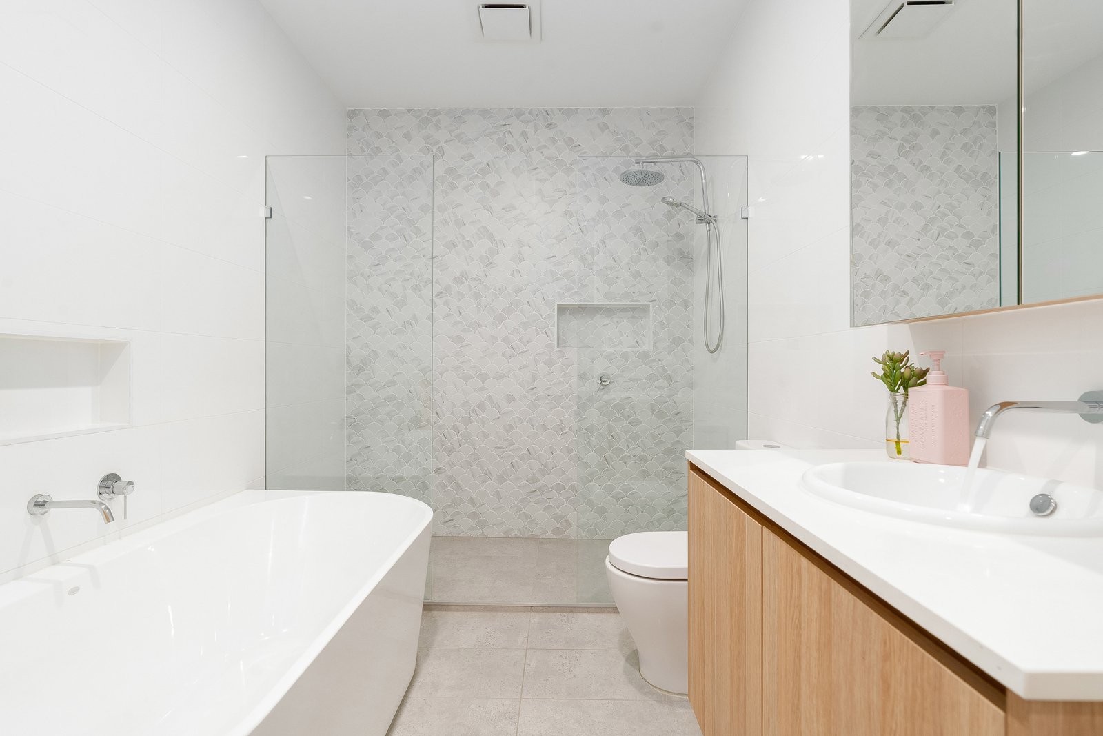 - Caeserstone countertops to all wet areas including 40mm waterfall stone bench.