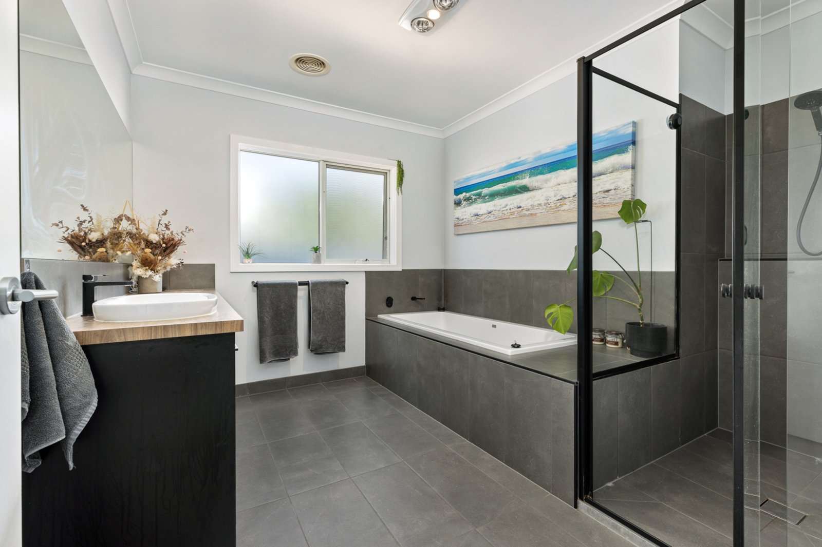 Comfort and efficiency have been prioritised with ducted reverse-cycle heating and cooling, solar hot water and solar panels contributing to reduced running costs.