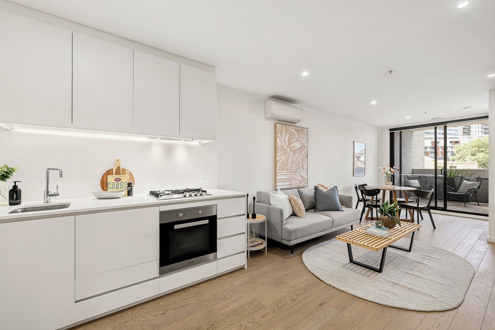 Just footsteps to the beach, parklands, cafes and nightlife, it’s the ultimate low-maintenance bayside base. Inside, a light-filled open-plan living and dining zone with engineered timber floors flows to a private balcony made for easy entertaining.