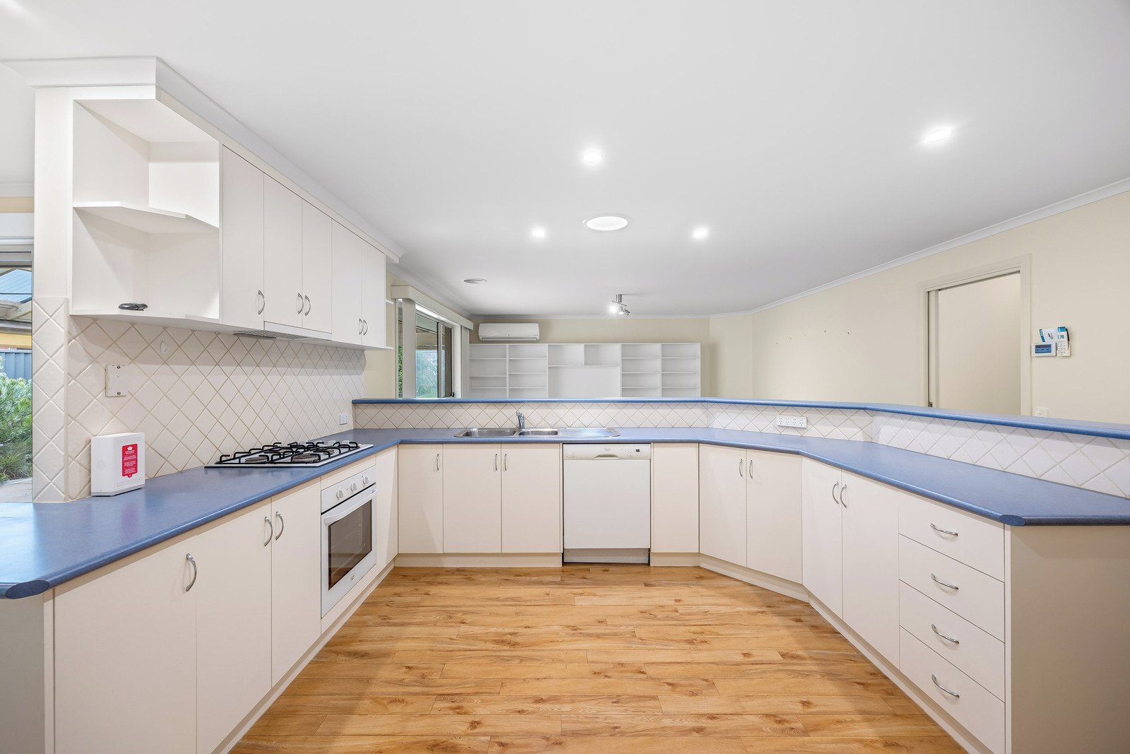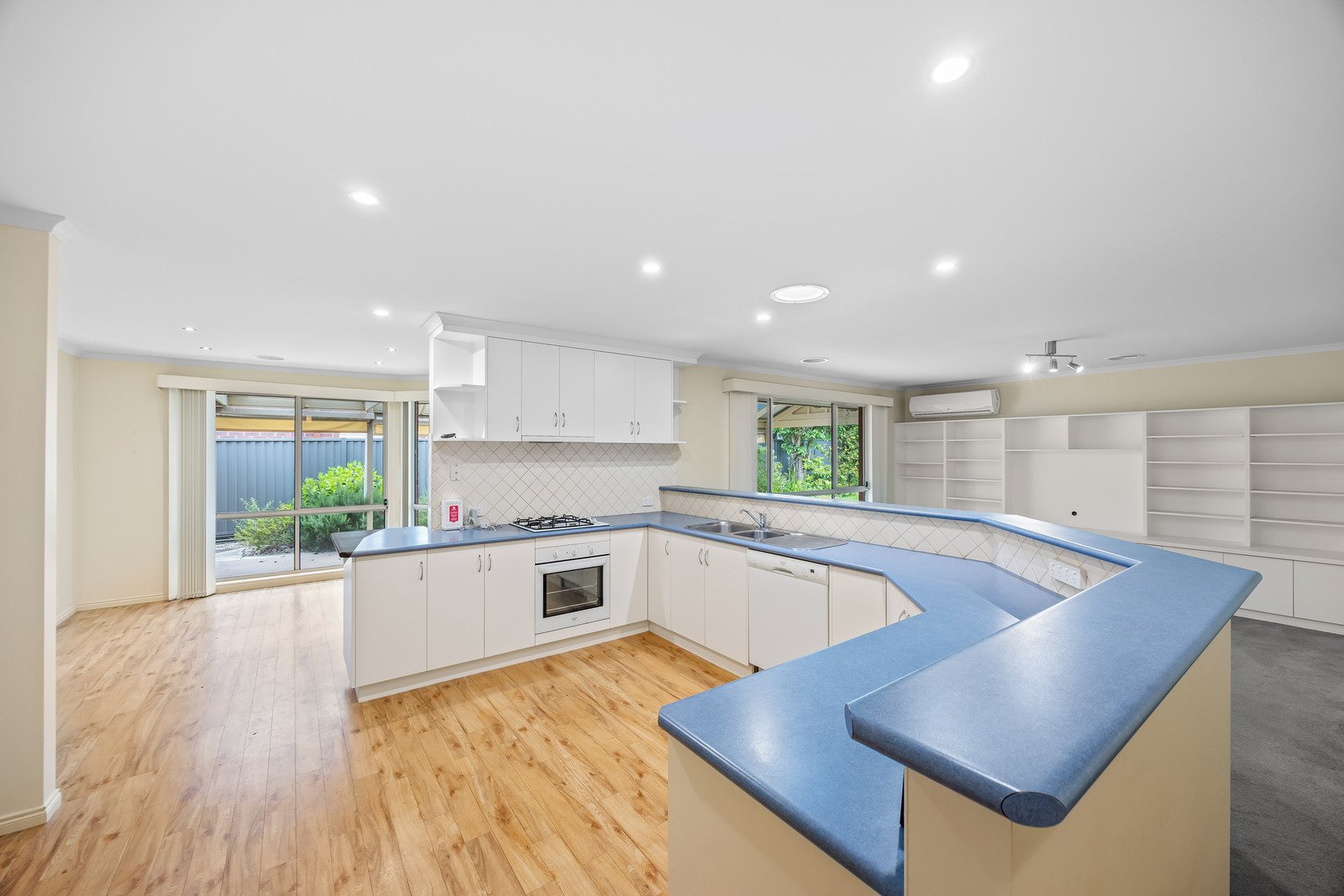 - Kitchen with gas cooktop, oven, dishwasher and ample storage