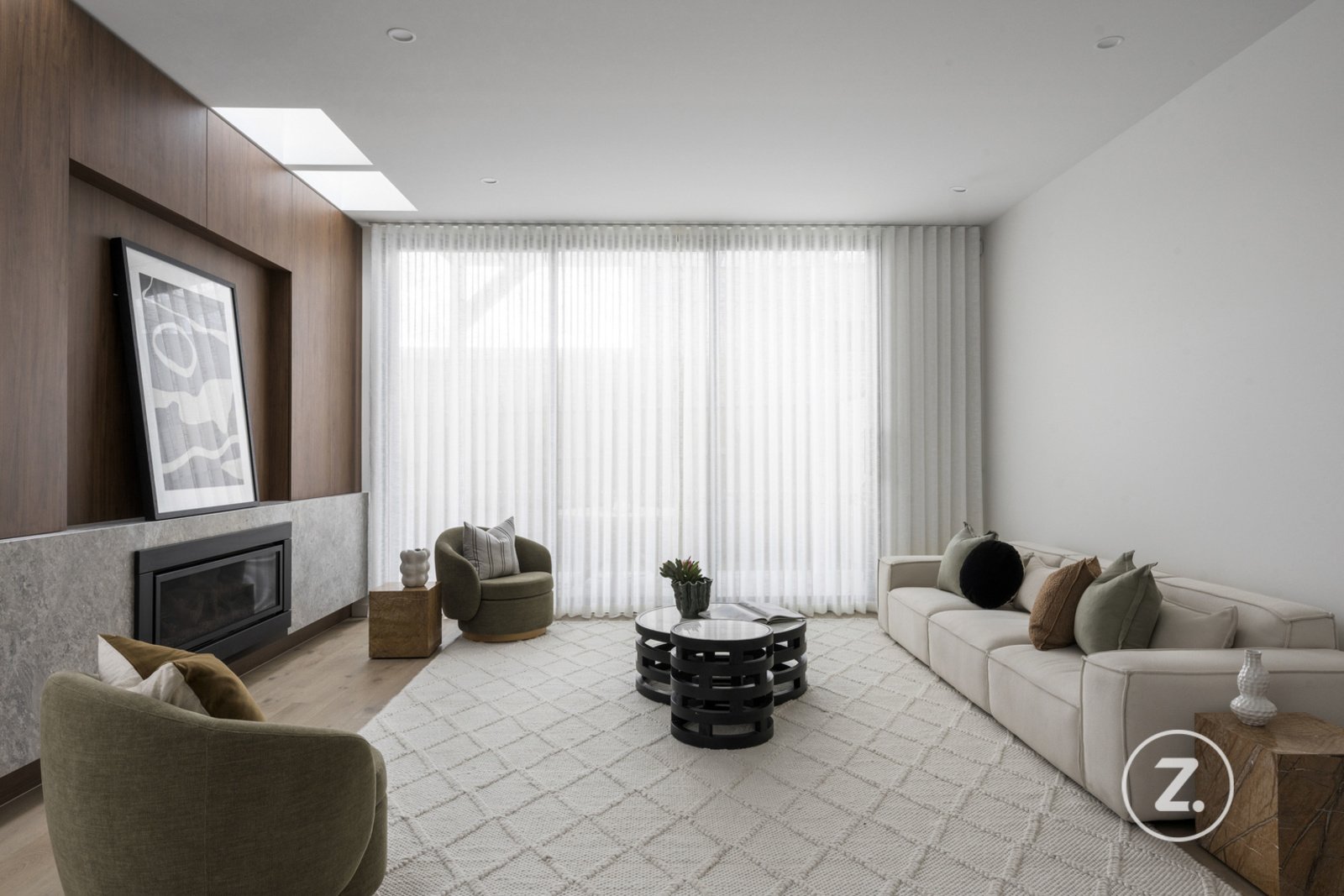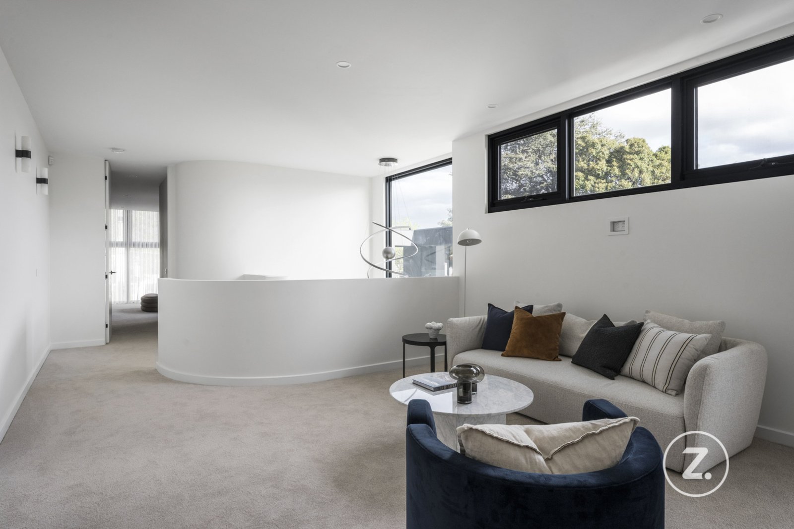 Throughout the home, craftsmanship and attention to detail are evident – from the curved walls and high ceilings to the oak flooring, natural stone finishes, and designer lighting. Zoned heating and cooling, skylights, a double garage, and additional driveway parking ensure complete comfort and convenience.