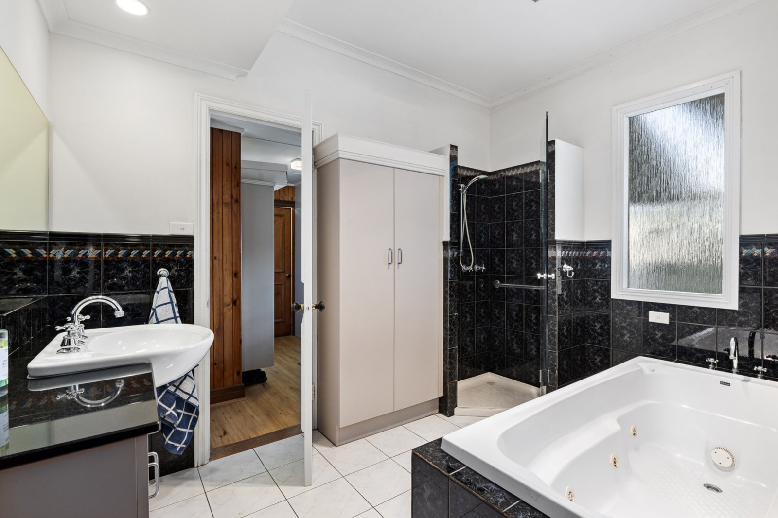 Accommodation includes four spacious bedrooms, with three located downstairs and a vast upstairs retreat that can easily serve as a fourth bedroom, kids’ games room or an additional living zone. The updated bathroom includes a stylish vanity, corner shower and spa bath, offering comfort while still leaving scope for future renovation. The home features split system heating and cooling for year-round comfort.