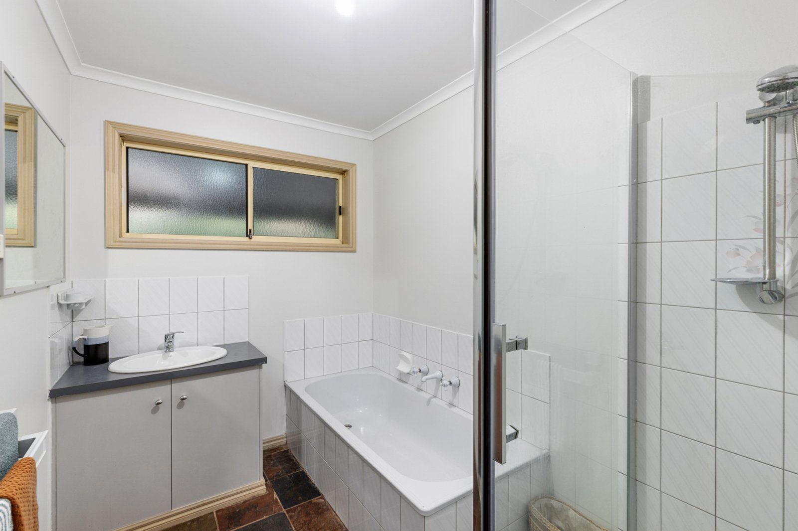 The home features three well-sized bedrooms, all serviced by a neat and functional central bathroom. Freshly updated paint in the bathroom adds a modern touch while maintaining the home’s rustic charm.