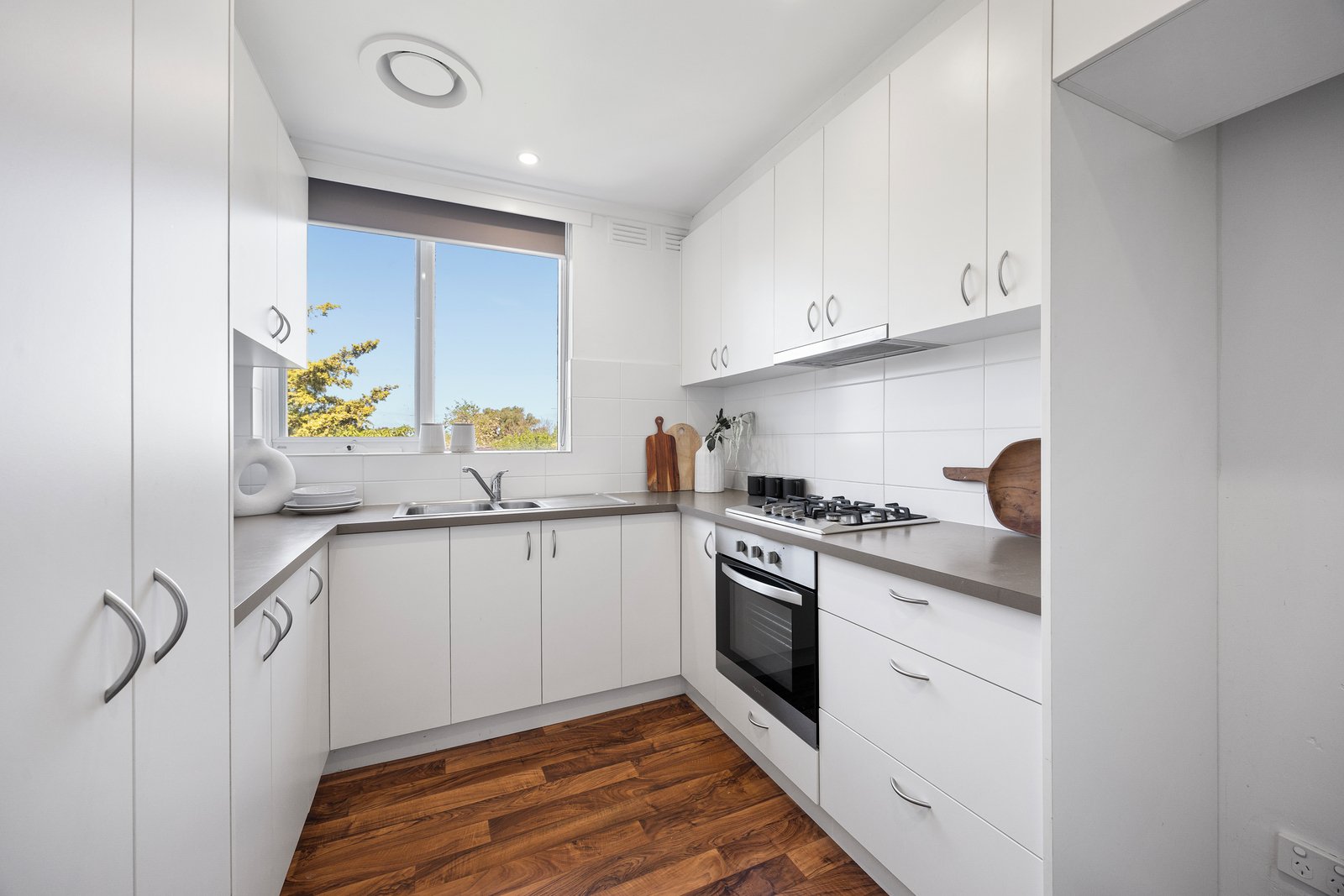 Tucked away at the rear of a peaceful garden complex, this light-filled top-floor apartment offers a rare sense of tranquillity and modern comfort. Two well-proportioned bedrooms with built-in robes are serviced by a central bathroom with convenient laundry facilities.