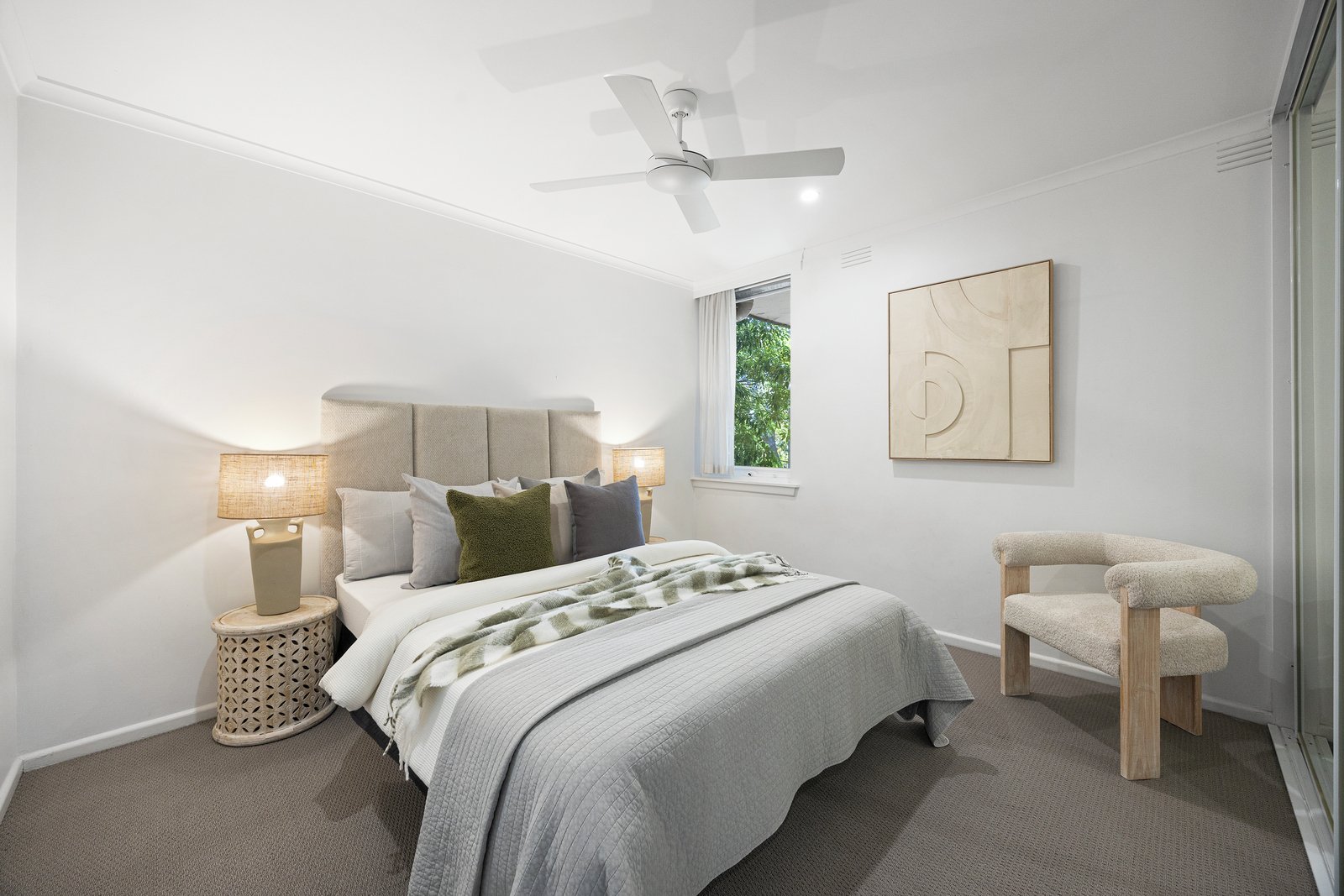 The open-plan living and dining area enjoys a beautiful north-facing outlook, complemented by a stylish kitchen with a gas cooktop, hard flooring and generous pantry space. A gas wall heater and ceiling fans ensure year-round comfort throughout.