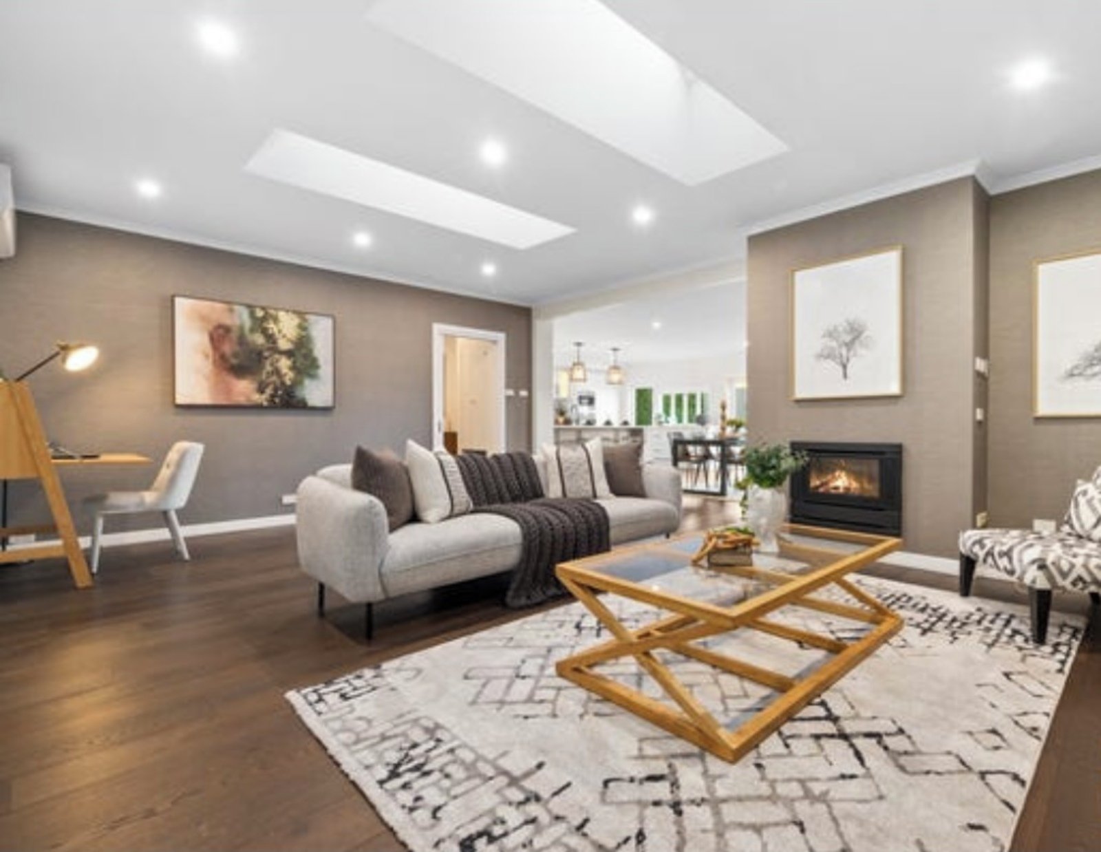 Set behind manicured hedged gardens, the elegant façade sets the stage for a home that exudes both classic charm and contemporary sophistication. A welcoming front veranda leads through to a dramatic entrance hall where engineered oak floors, high ceilings, and natural light create an immediate sense of space and calm — the perfect introduction for families seeking something truly special.
