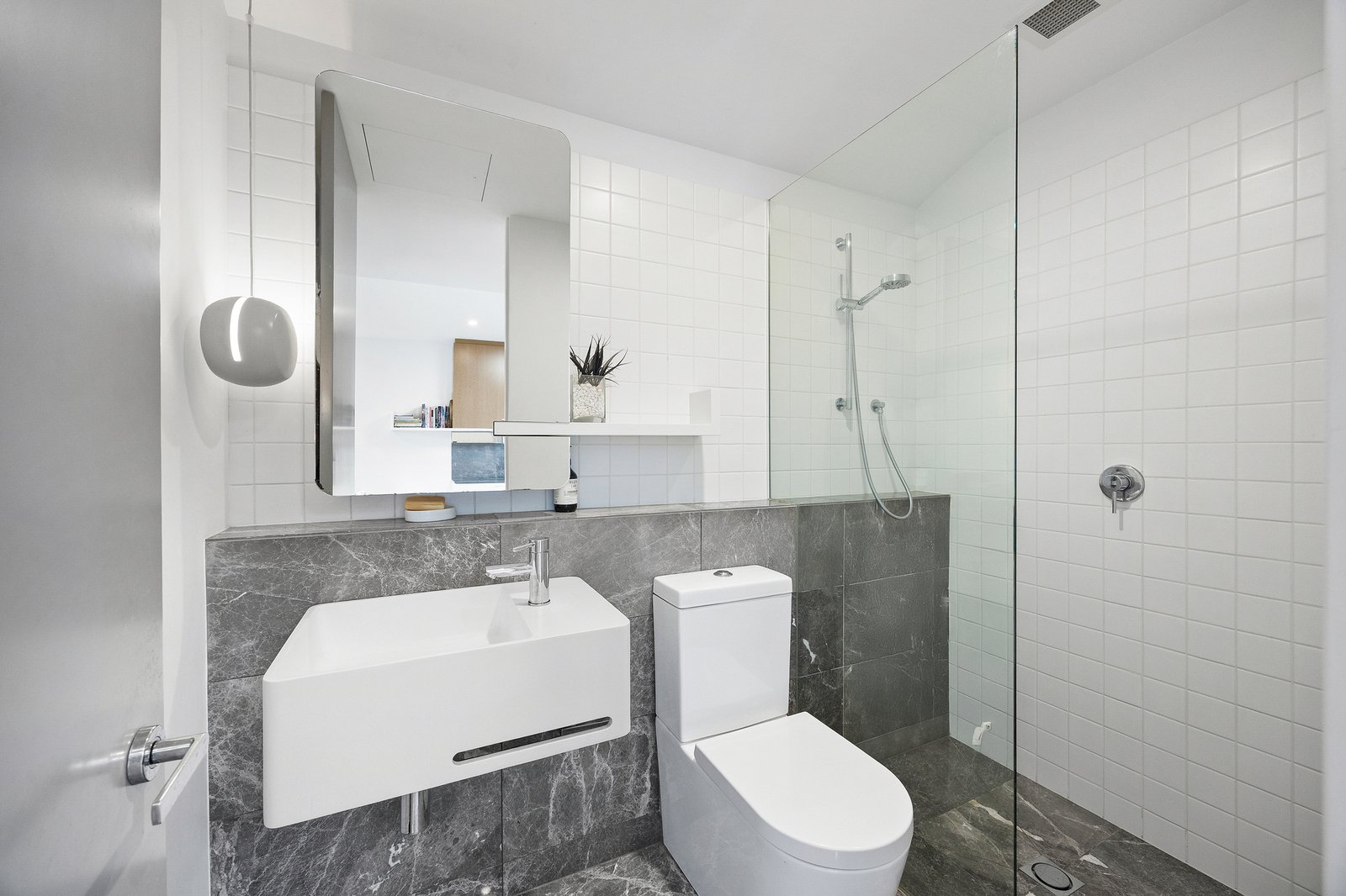 Accommodation is equally refined. The master suite pairs extensive wardrobes with a beautifully detailed ensuite, while the second bedroom - overlooking the terrace - enjoys its own sense of sanctuary and is served by a stylish main bathroom.