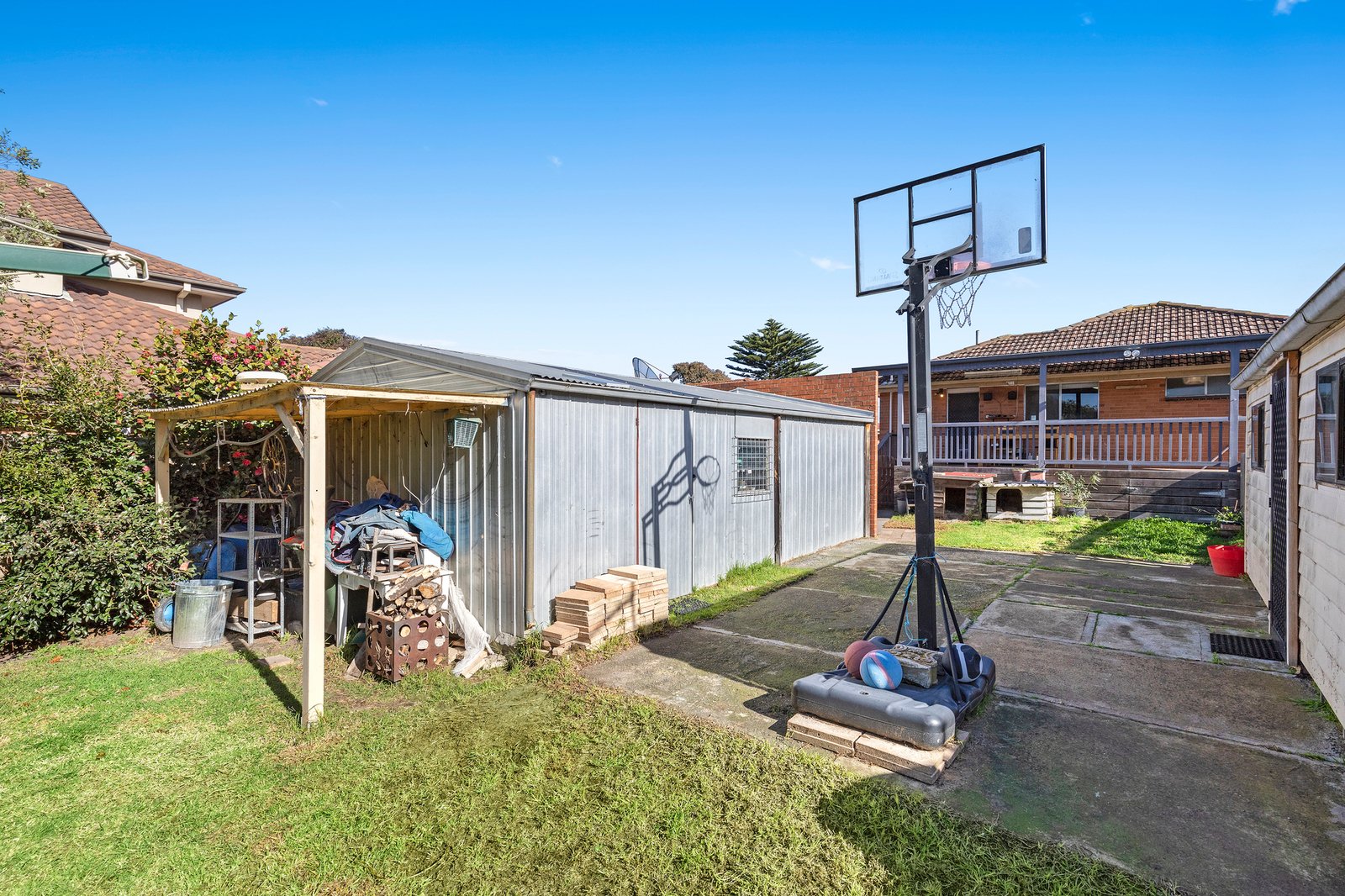 The existing home includes a generous L-shaped lounge/dining area, well-equipped kitchen with breakfast bar, central family bathroom and three well-sized bedrooms. Additional features include a laundry, separate WC, ducted heating, a powered freestanding studio/bungalow, and a double garage with workshop area.