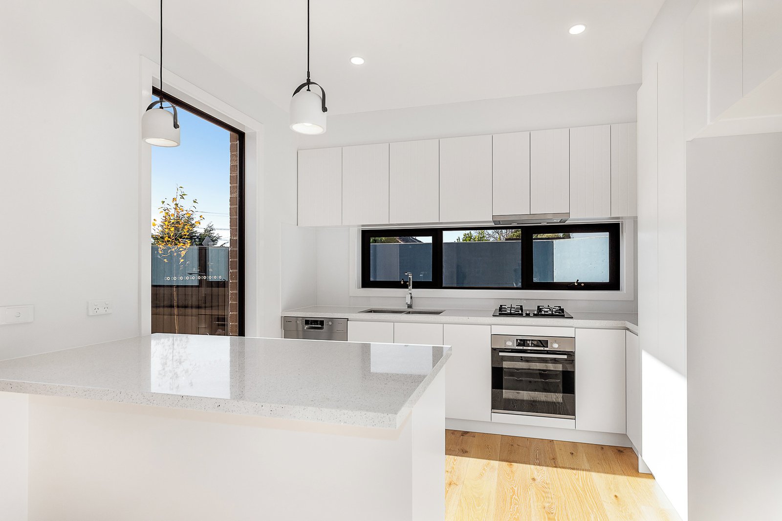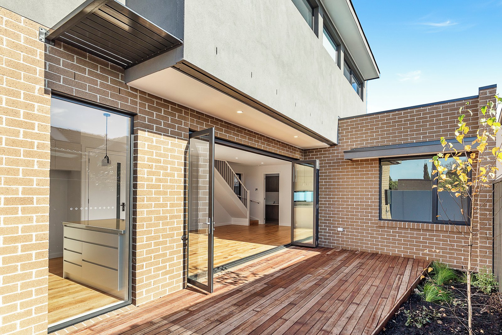 Downstairs features superb open plan kitchen living with a natural flow to the entertainers decked courtyard, state of the art kitchen and stainless steel appliances; opening onto the sun drenched deck, downstairs master bedroom with walk in robe and luxury en-suite, powder room & separate laundry with external access.