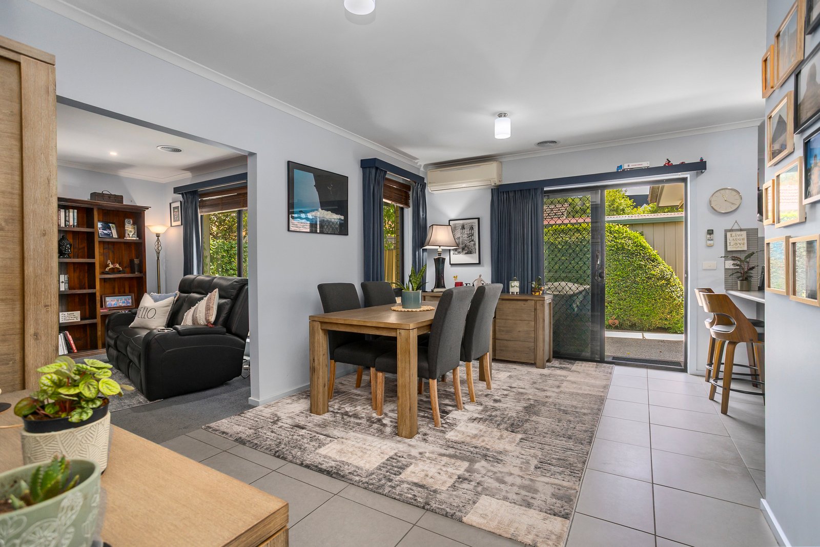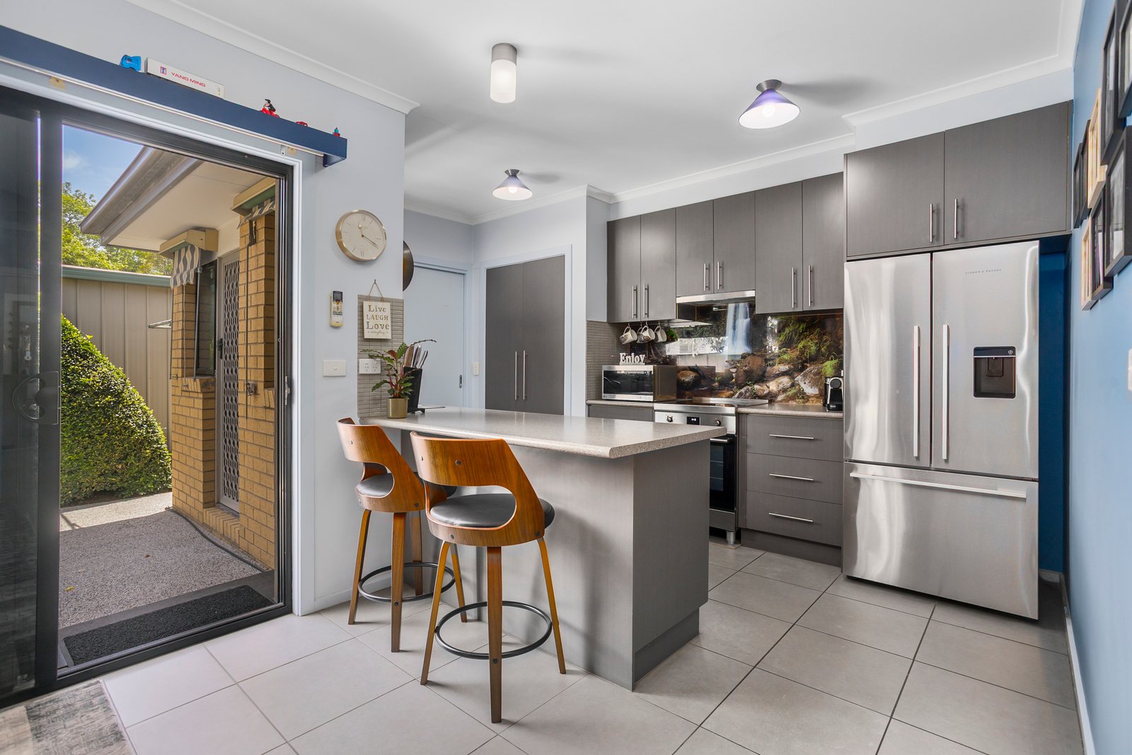 The kitchen and dining zone forms the functional heart of the home, flowing seamlessly to a private, low-maintenance courtyard via glass sliding doors. This indoor-outdoor connection creates an ideal setting for relaxed meals, entertaining or simply enjoying a quiet moment outdoors. A separate laundry sits just off the kitchen and provides handy external access, while a garden shed adds valuable storage.