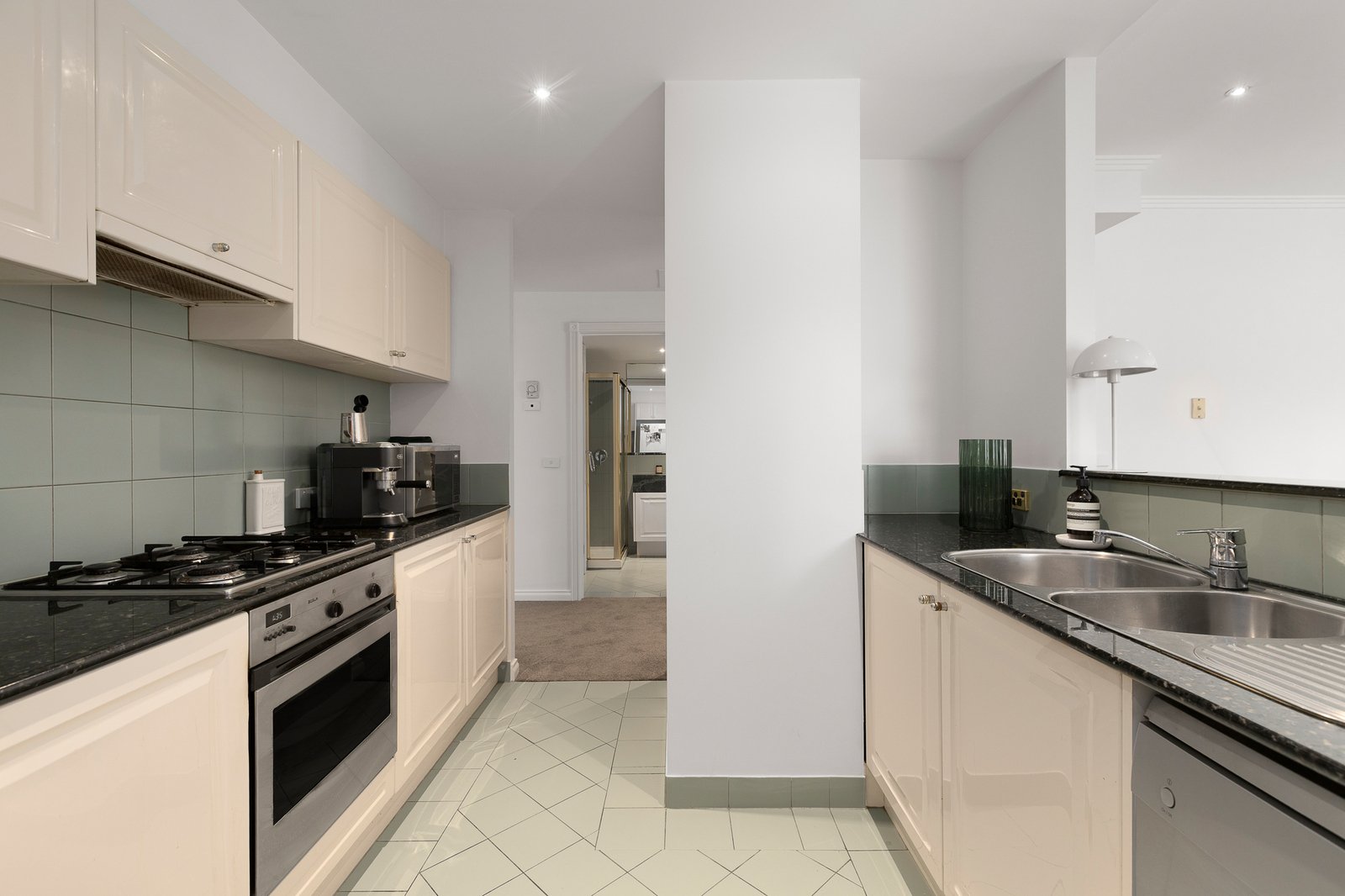 Discover glistening, granite finishes in a chef-friendly kitchen boasting an inviting breakfast bar and the full suite of high-performing Bosch appliances including a dishwasher and a 4-burner gas cooktop. Framed by oversized picture windows, wide-reaching open-plan living and dining spreads out in the all -day warmth of northeastern light. Both generously sized and robed bedrooms are filled with light, serviced by a pair of bathrooms with marble-topped vanities. The primary bathroom contains a luxurious bathtub, while the second bedroom enjoys access to an undercover north-facing balcony.