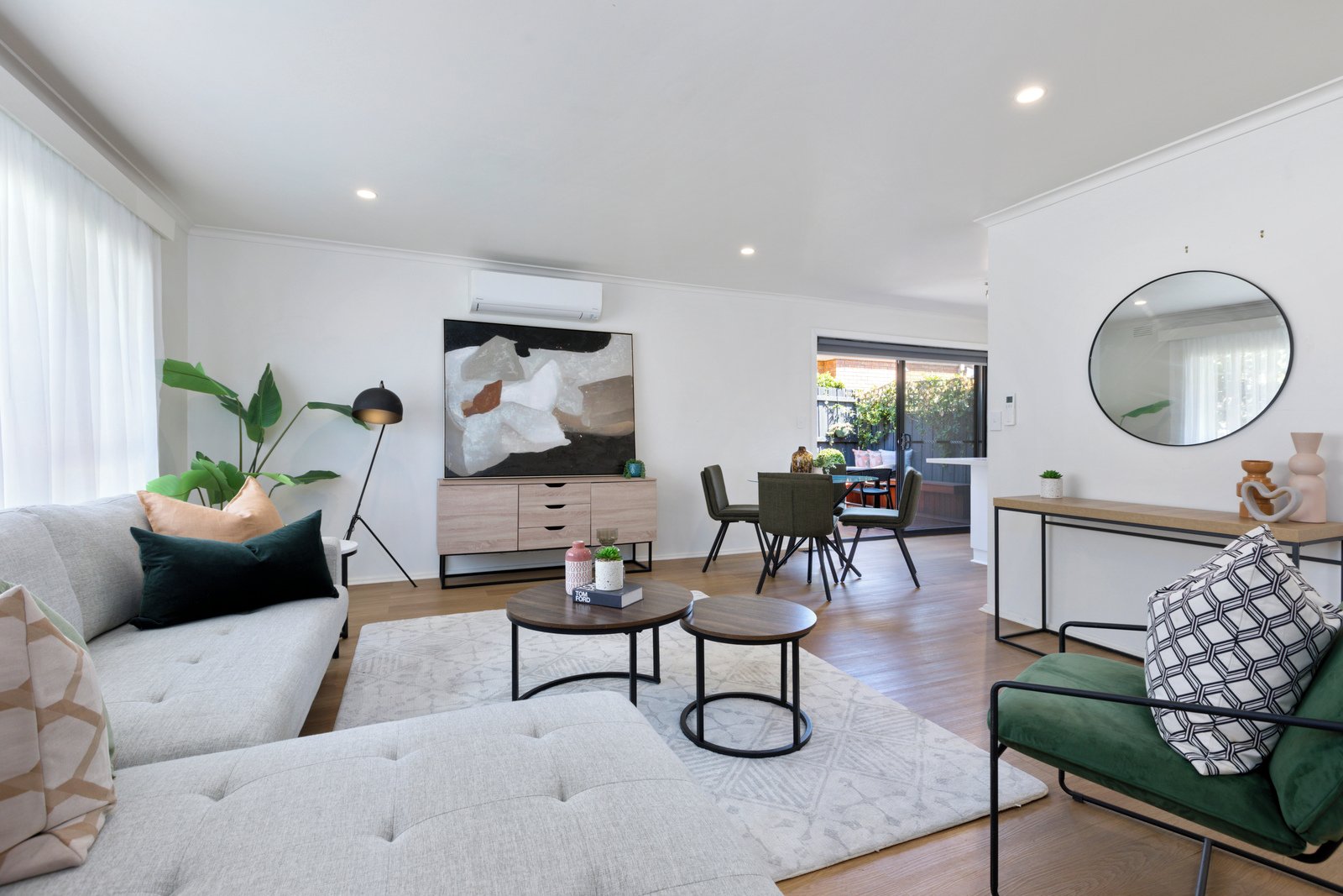 This spacious and thoughtfully designed two-bedroom home offers an inviting blend of comfort, style, and convenience. The open-plan living and dining area is filled with natural light and flows seamlessly into a beautifully renovated hostess kitchen, complete with an abundance of bench space, gas cooktop, electric oven, and dishwasher—perfect for everyday living and entertaining alike. Sliding doors open to a decked alfresco area, creating an ideal space to relax or host guests outdoors.