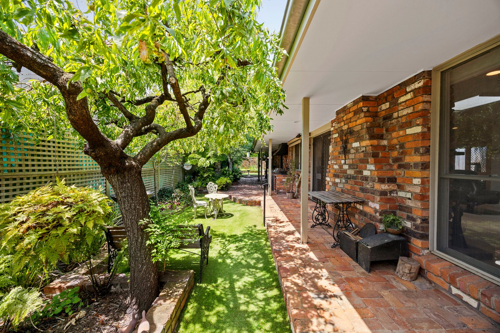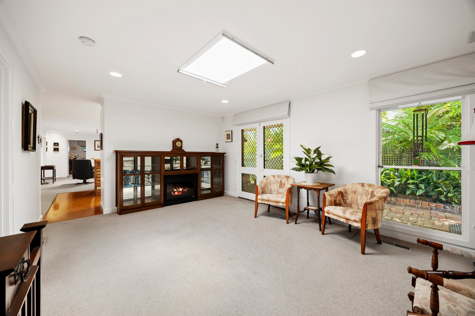 Designed for easy everyday living, the home unfolds across multiple living zones, including a formal living room, a spacious dining area with a versatile study nook, and an open-plan family room warmed by a wood fireplace. The central, skylit kitchen enjoys excellent bench space, quality appliances and garden views, flowing effortlessly to verandahs, brick pathways, and a beautifully landscaped backyard, privacy and scope of the allotment.