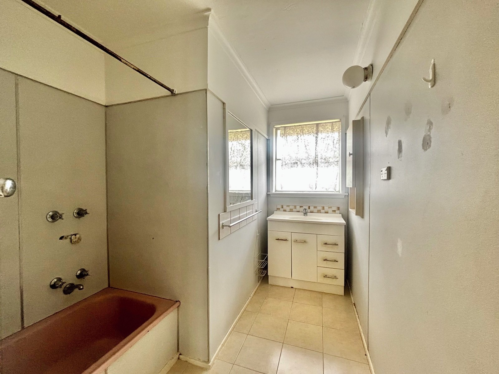 * Bathroom with shower over bath