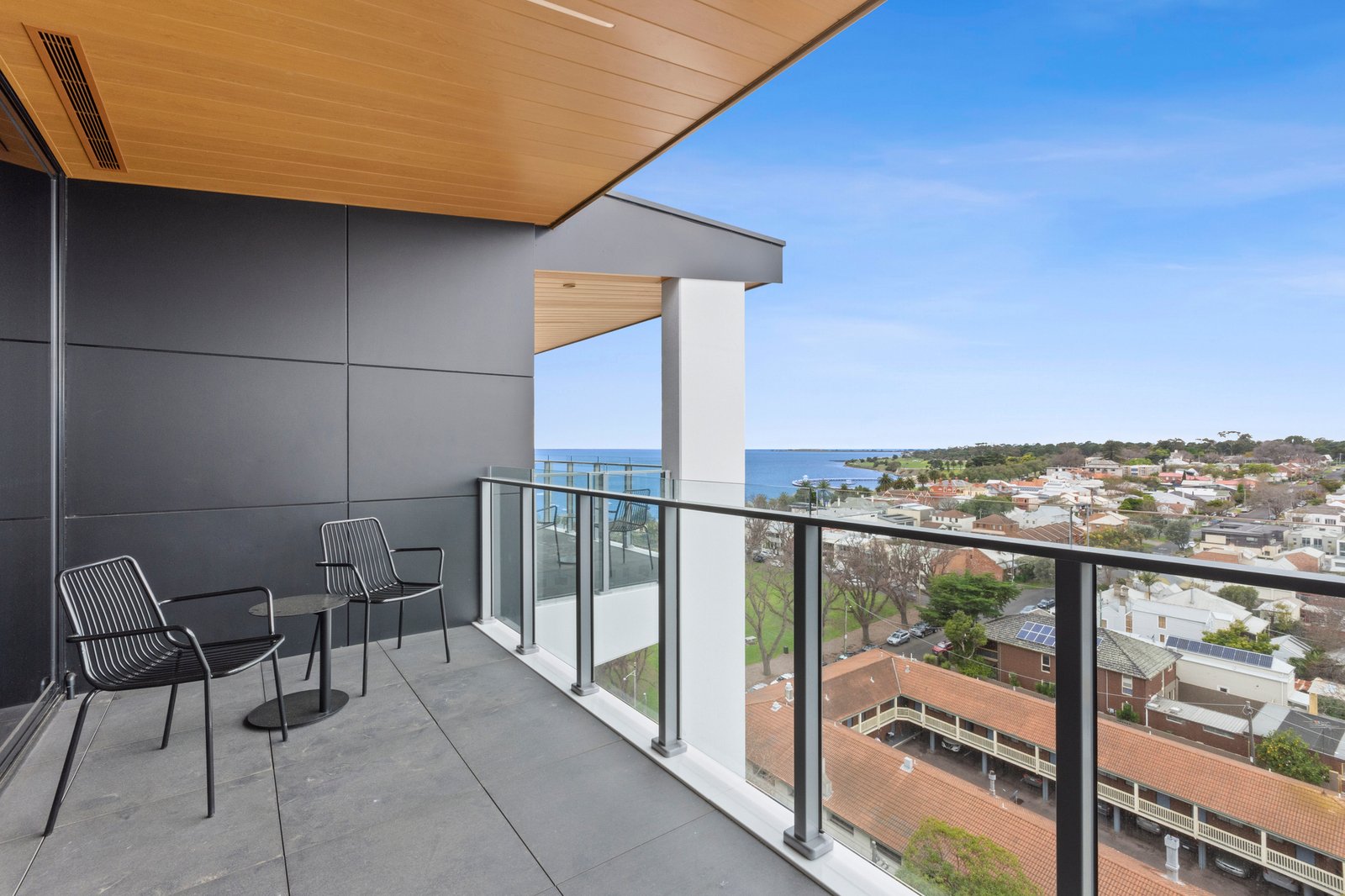 Stepping out onto the balcony, this position provides a captivating aspect looking over the rooftops to the East of the city and out to the water. Ever changing colours and skyscapes provide a beautiful backdrop to your luxurious surrounds.