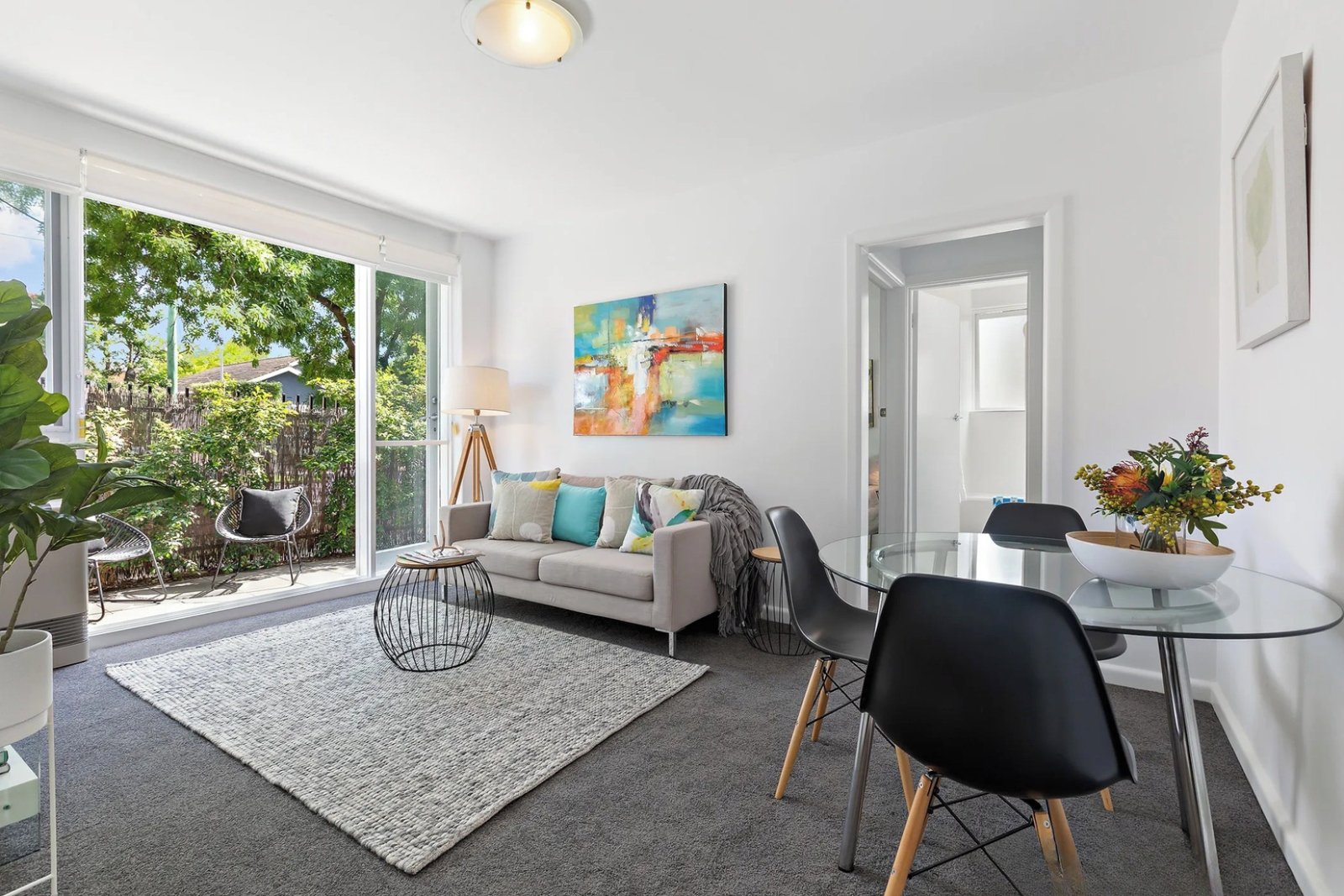 Set on the ground floor of a boutique block of just nine, the apartment features a generous living and dining area flowing seamlessly to an ultra-spacious, landscaped courtyard, ideal for entertaining and enjoying peaceful park outlooks. The bright, contemporary kitchen offers excellent space and functionality, while the bedroom is fitted with ceiling-height built-in robes. Additional ceiling-height storage sits outside the separate bathroom, adding further practicality.