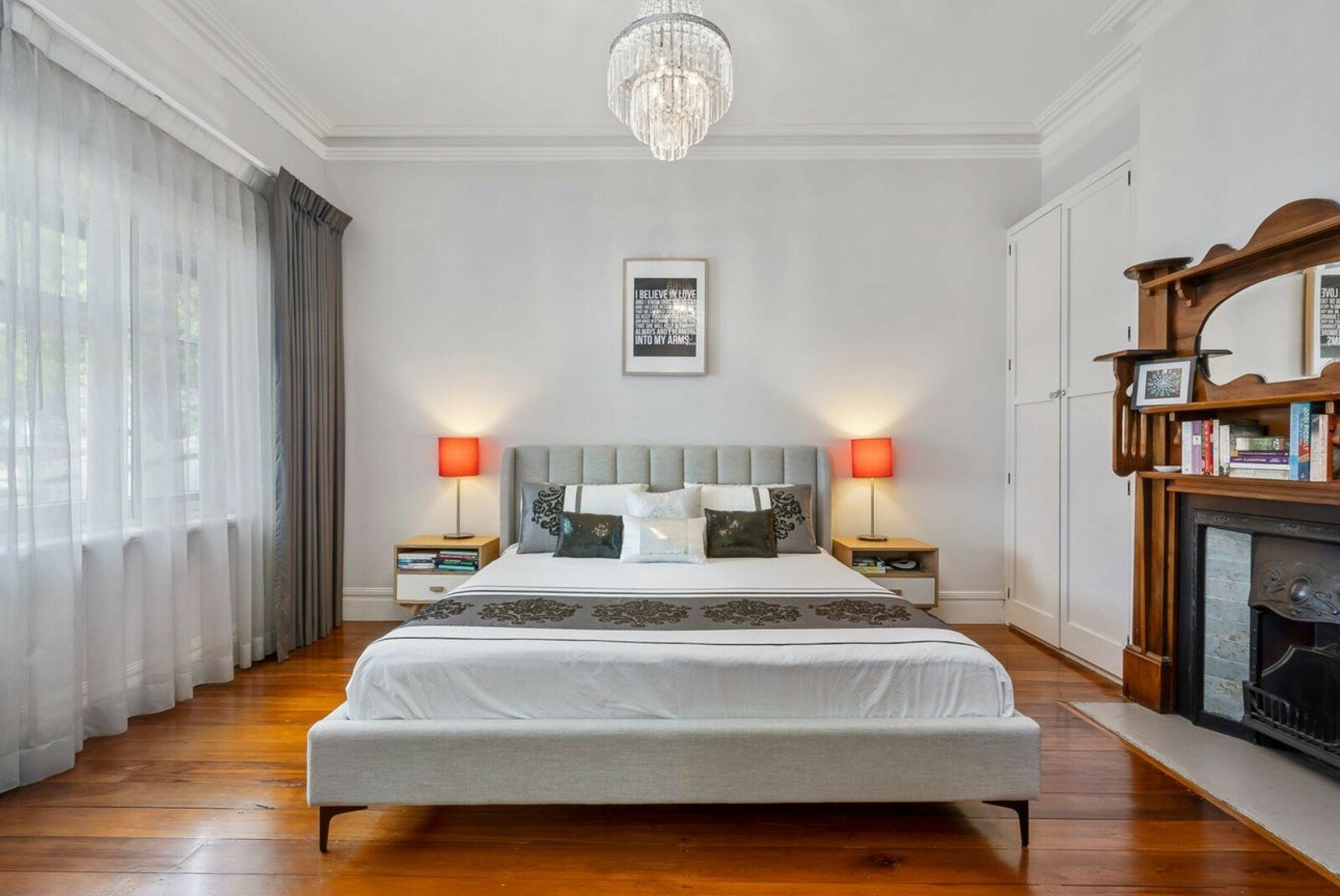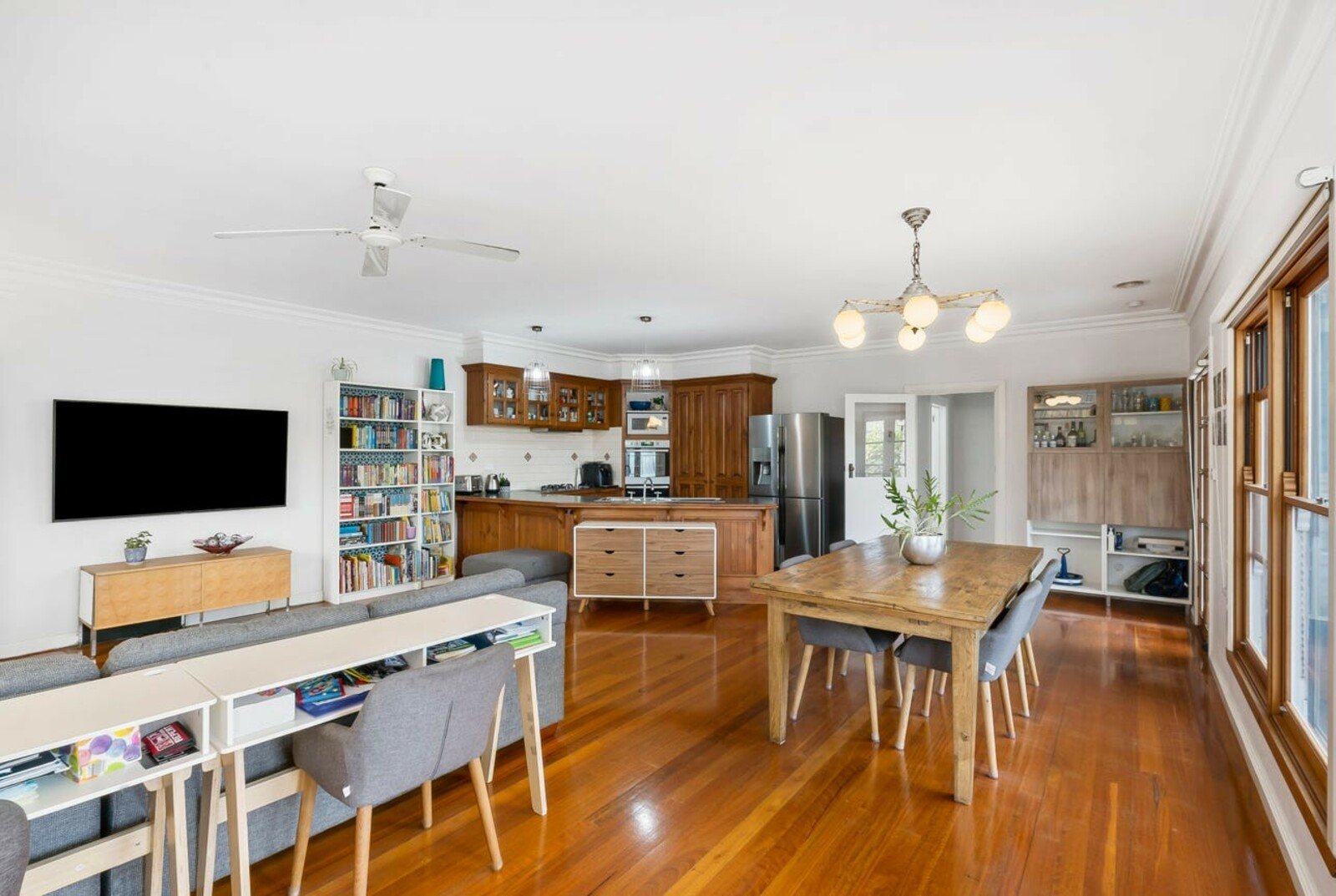 The front of the residence has been beautifully restored to its Art-Deco heritage, showcasing exquisite period features including decorative ceiling panels, picture rails, original windows, a fireplace and polished timber floors.