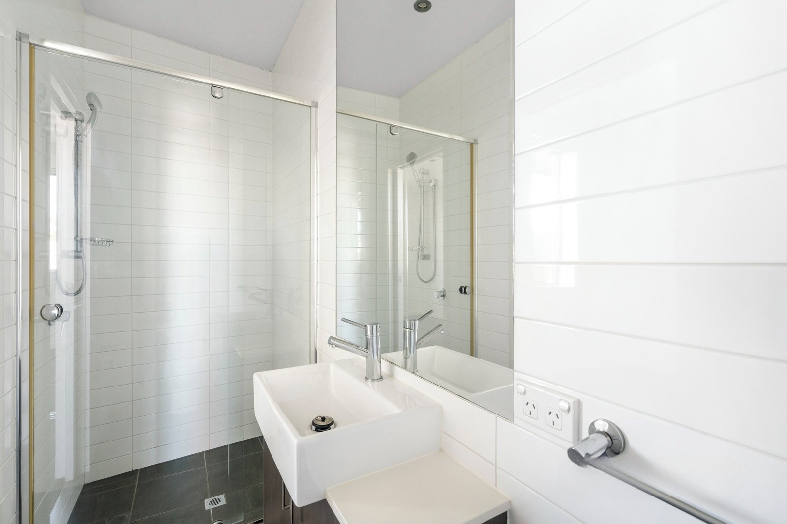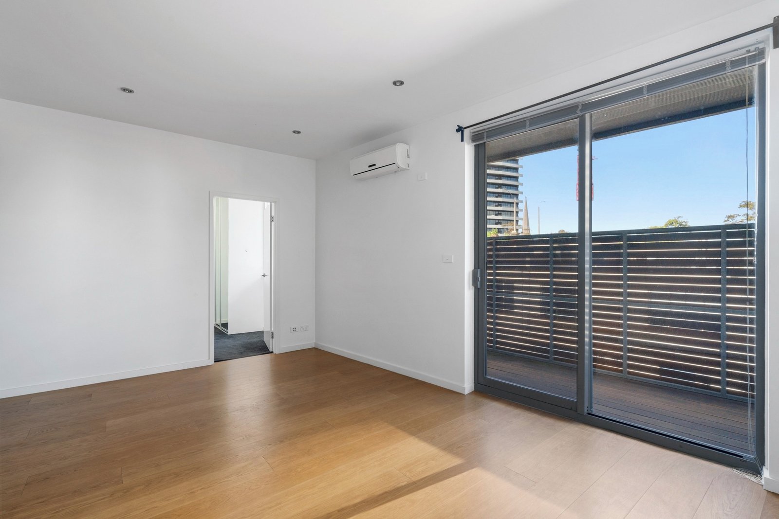 The apartment features video intercom entry, a modern open-plan kitchen equipped with a dishwasher and gas cooking. Both spacious double bedrooms come with built-in mirrored robes and their own ensuites, private northwest-facing balcony, a dedicated car space with lock-up storage, split-system heating and cooling, space for a front-loader washing machine in the kitchen.