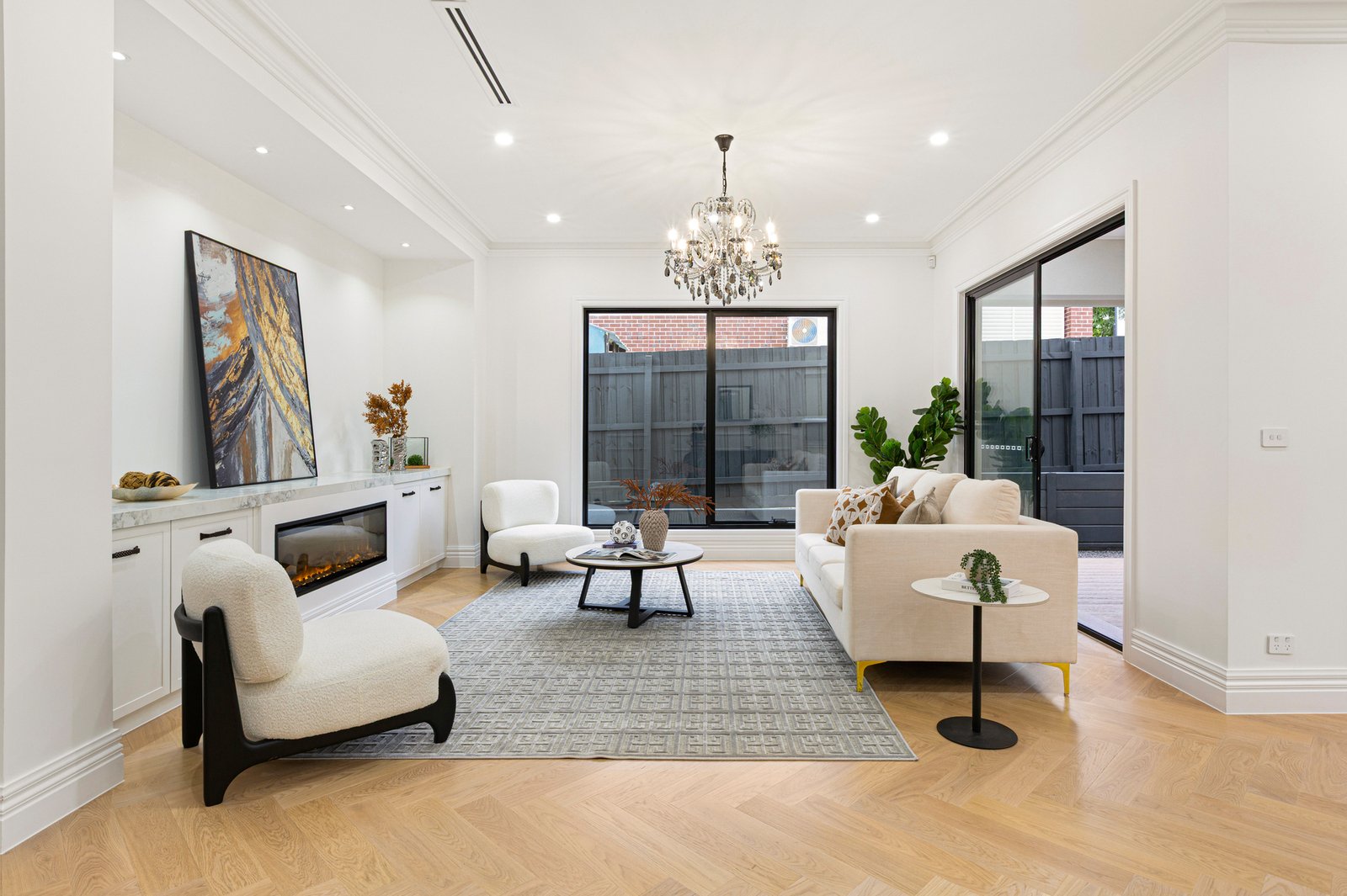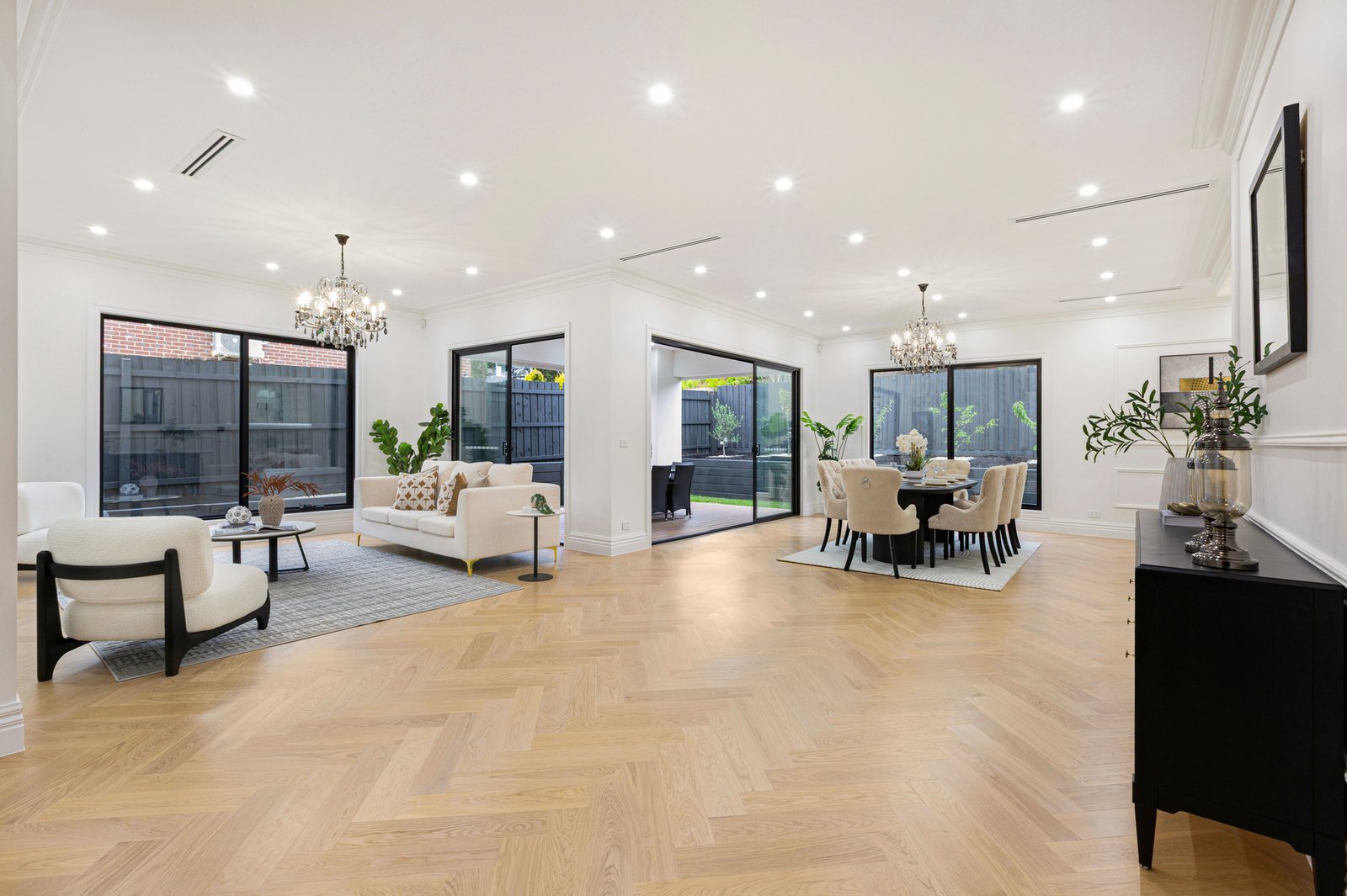 Designed for ‘wow’ factor entertaining with a spectacular 6m void, this stunning new 65-square (approx.) showcase brings French provincial elegance to the fore.