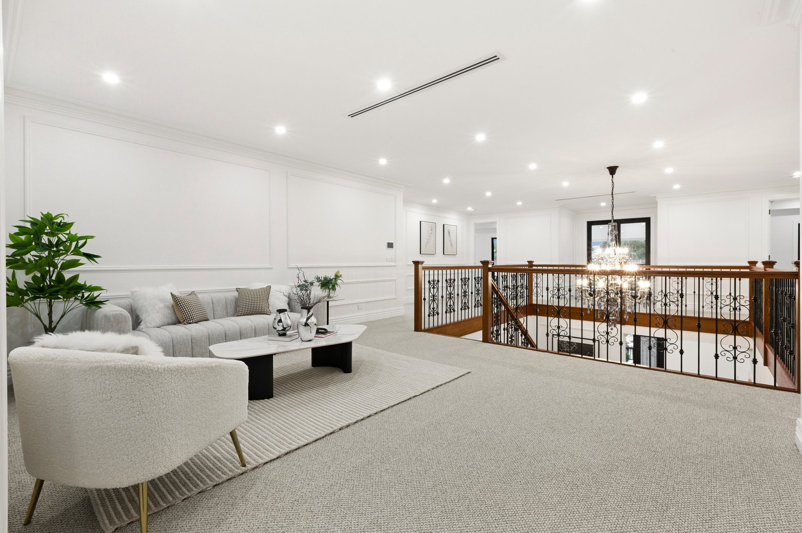 The property’s true brilliance is in its balance of classical design with contemporary comfort, to produce a finely crafted family residence resplendent with decorative beauty and hi-tech features. A remote-controlled chandelier, sleek cabinetry, engineered timber floors and high-quality carpets with thick underlays, large solar system, 2 large zoned Daikin heating and cooling units, 2 hot water systems, spotlight the upmarket credentials.