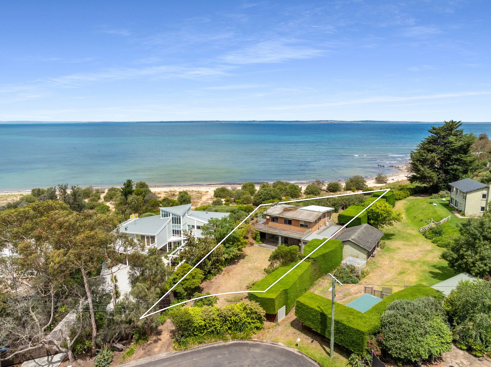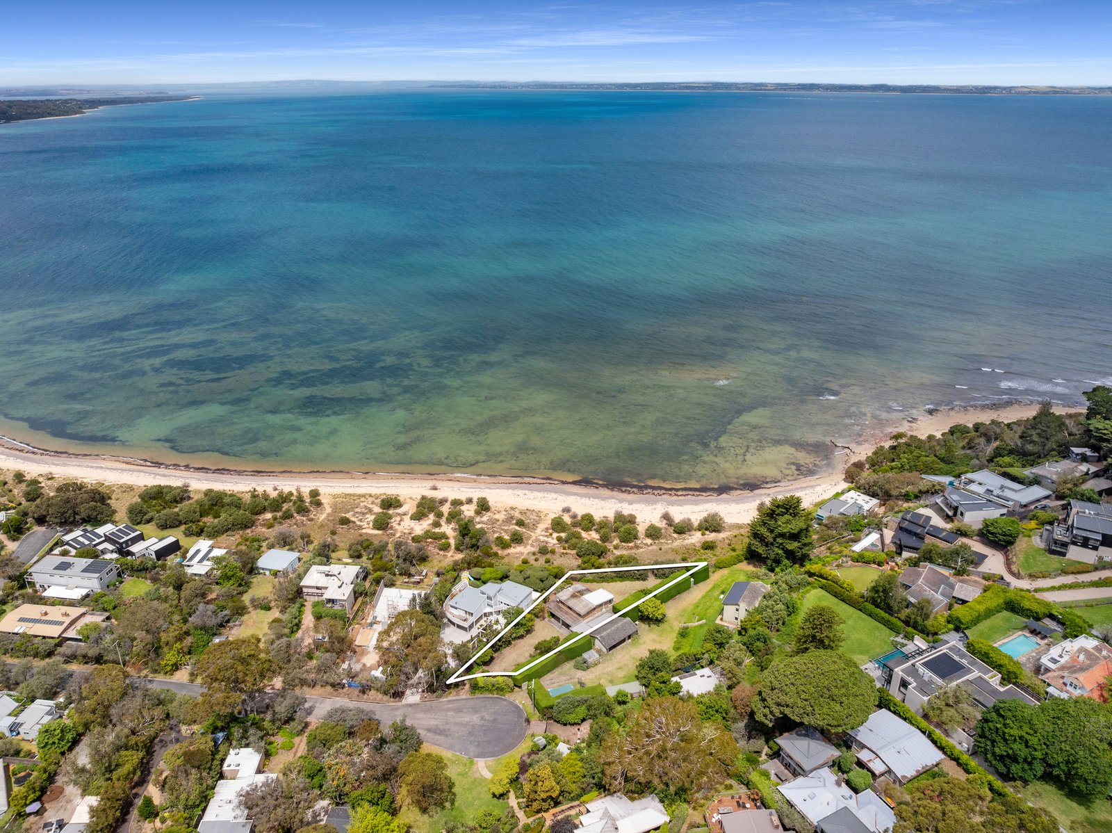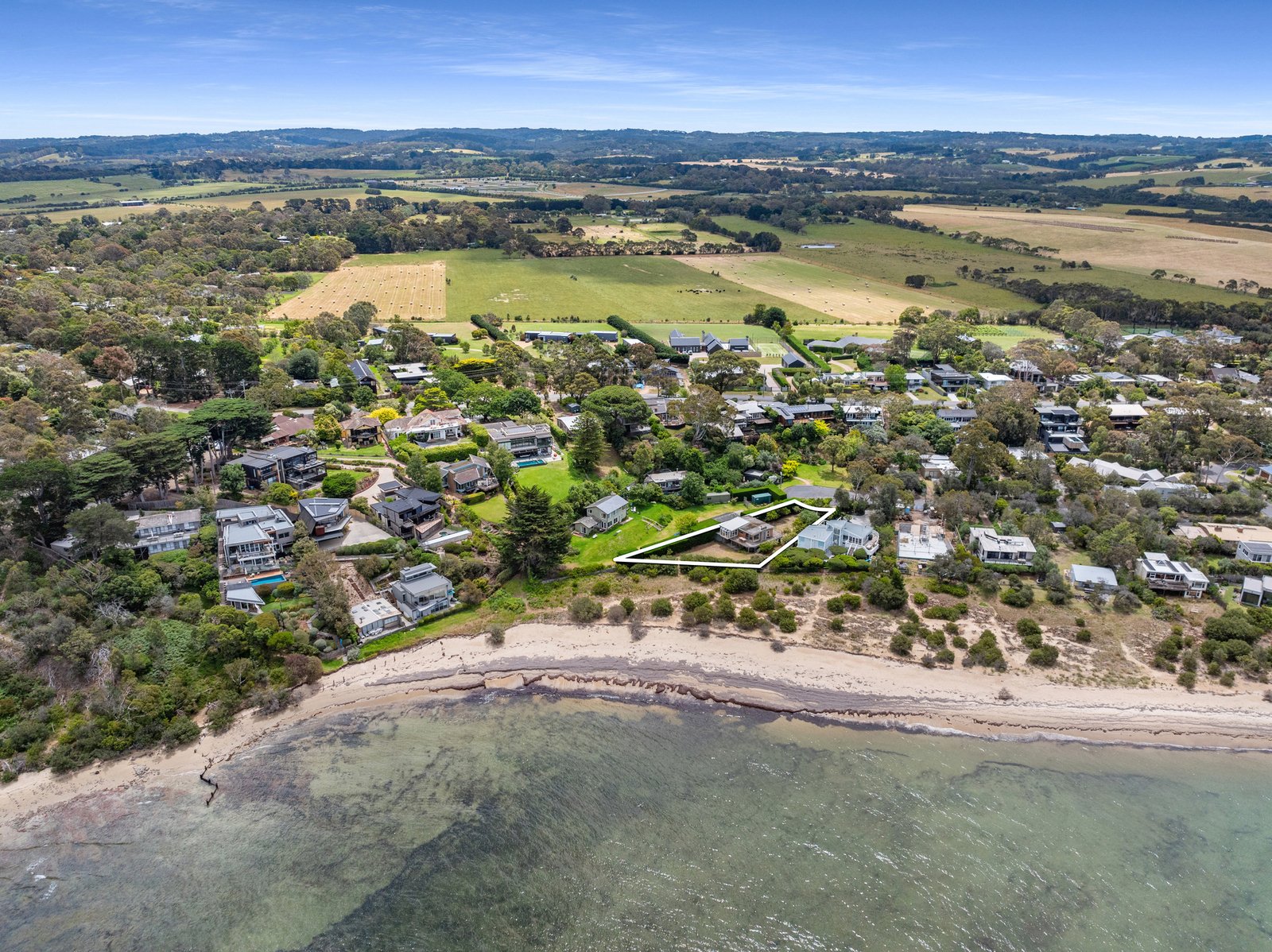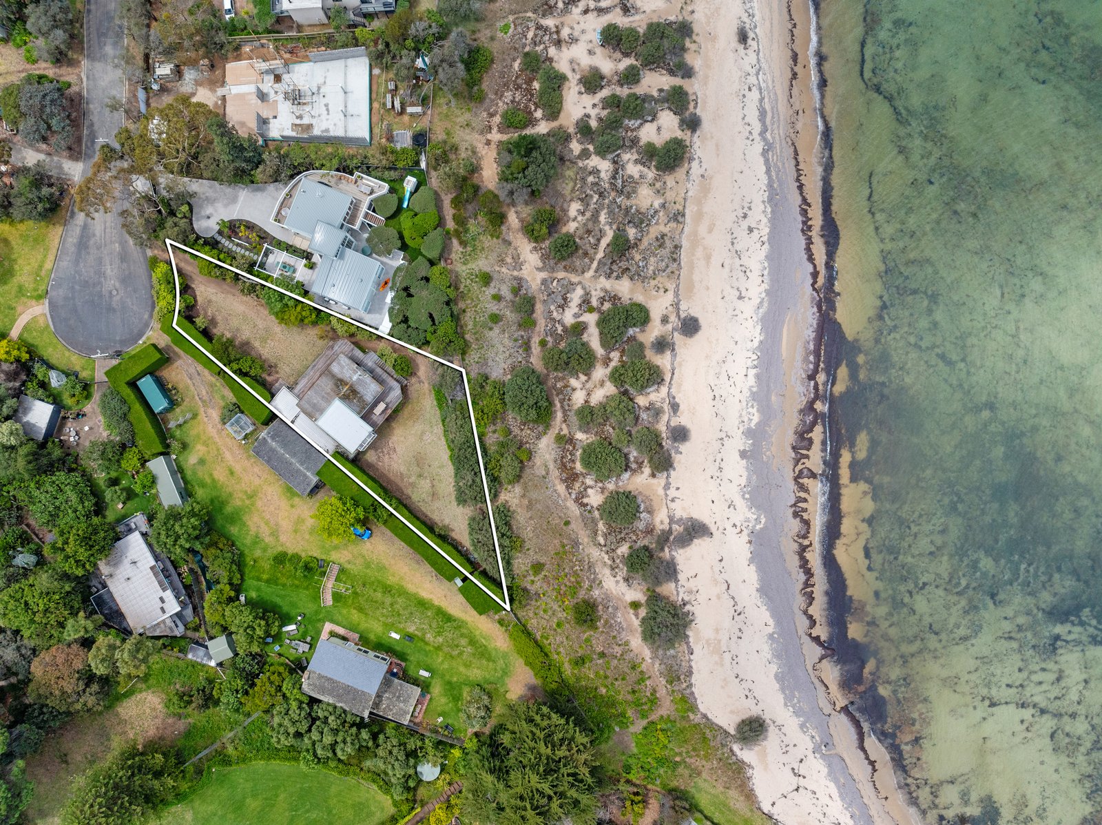 Presiding over a prime beachfront position with a private path to the sand and water, this classic original four-bedroom beach house captures uninterrupted views across Western Port, Phillip Island and Seal Rocks. Aptly tucked away along Balnarring Beach’s most privileged stretch, the property embodies a quiet exclusivity to the rear of a rare and elevated 1,188 sqm (approx) allotment. Council approved plans permit the immediate development of a large, architect designed, four bedroom residence elevated above the existing floor level.