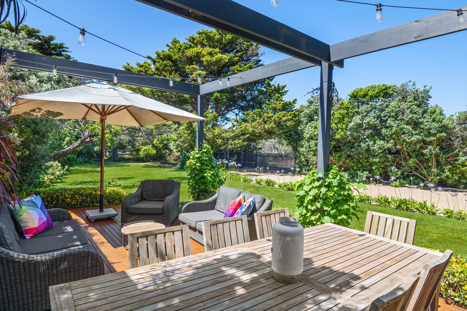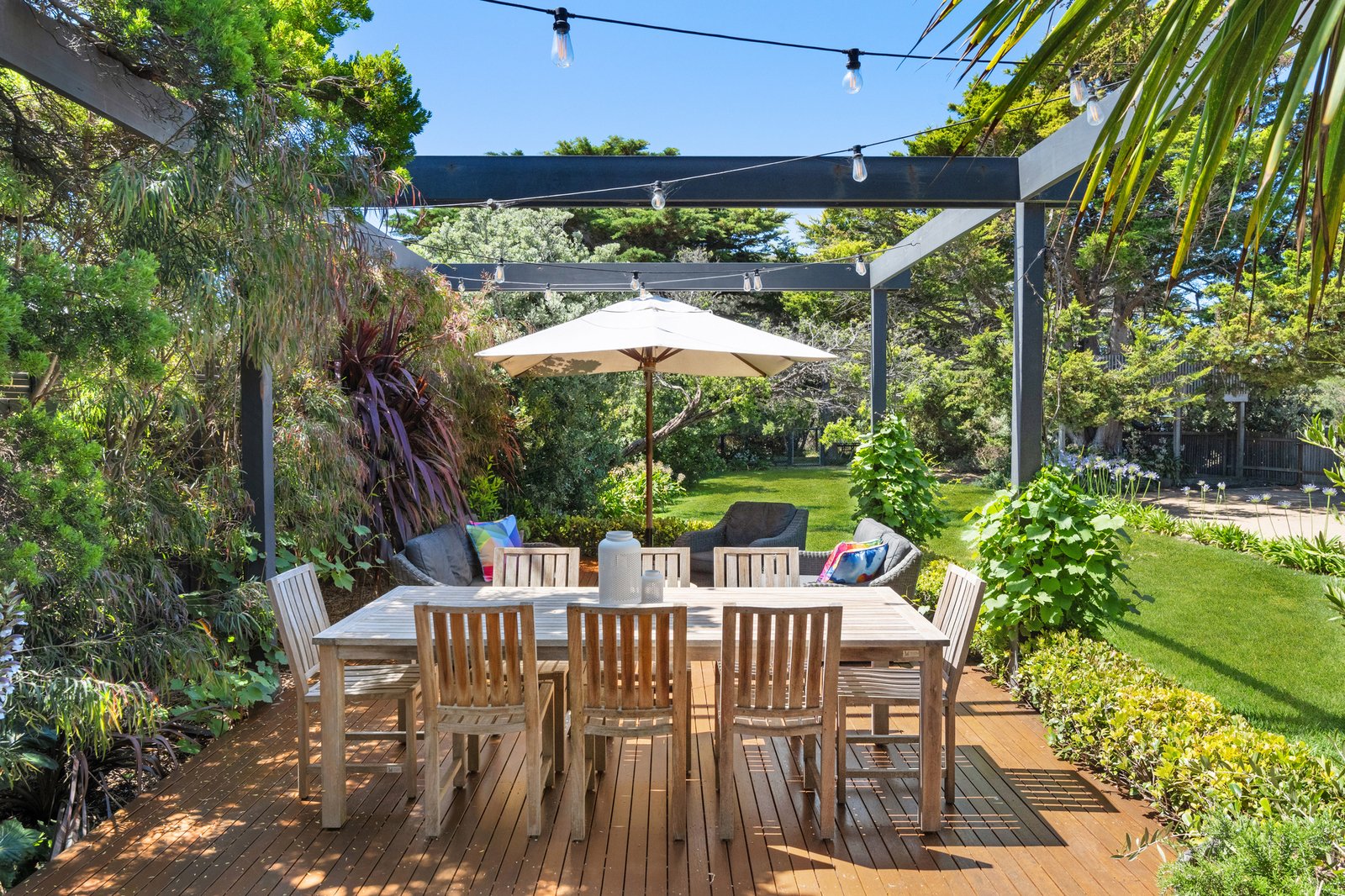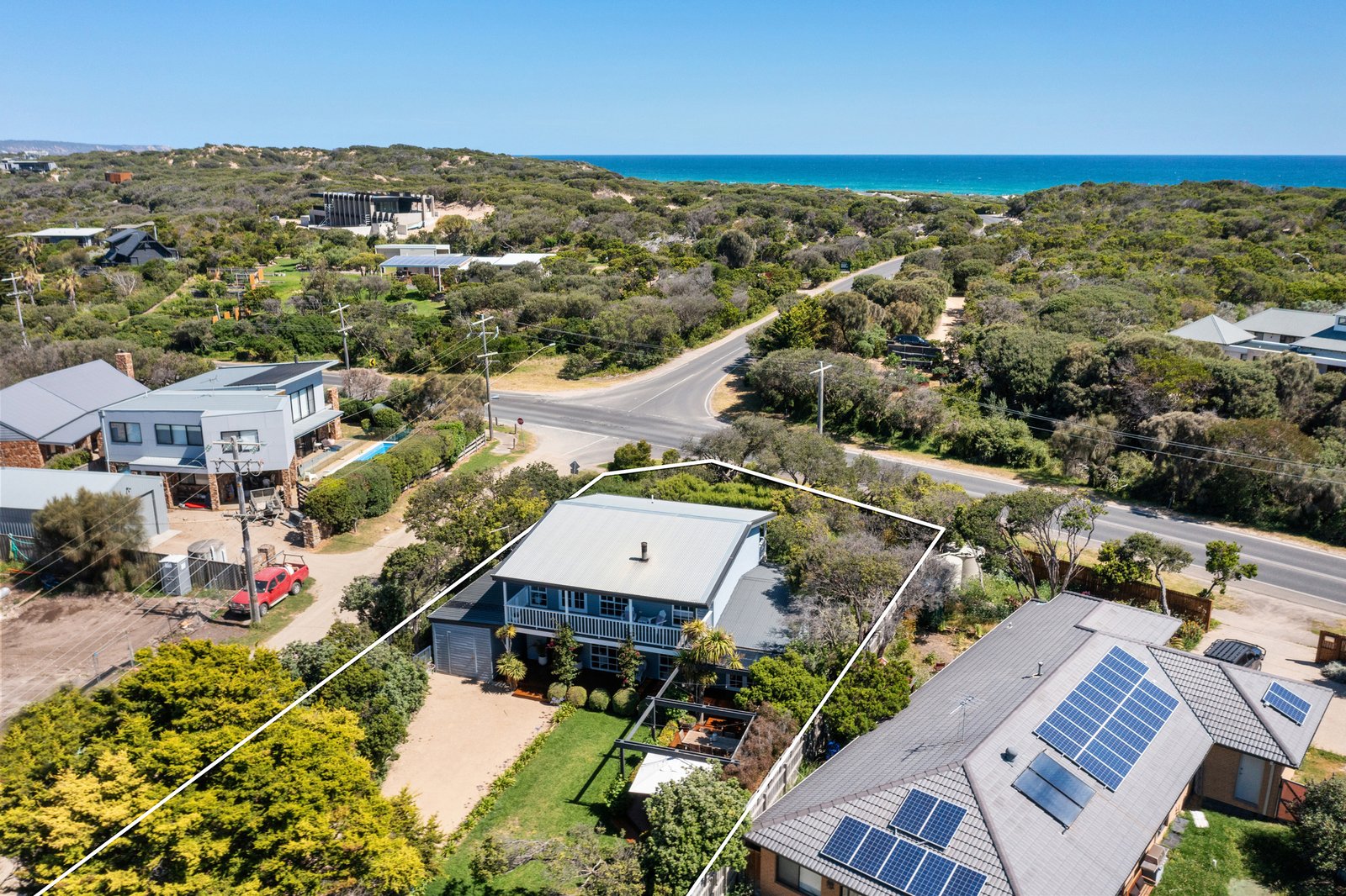 Fronted by the untamed beauty of the Mornington Peninsula National Park with Rye Ocean Beach just a short stroll away, this five-bedroom coastal entertainer claims a shielded position of privacy, scale and an unmistakable connection to the sea. Dual access via Banyan Street allows movement in and out with ease, accompanied by the constant soundtrack of the ocean beyond.