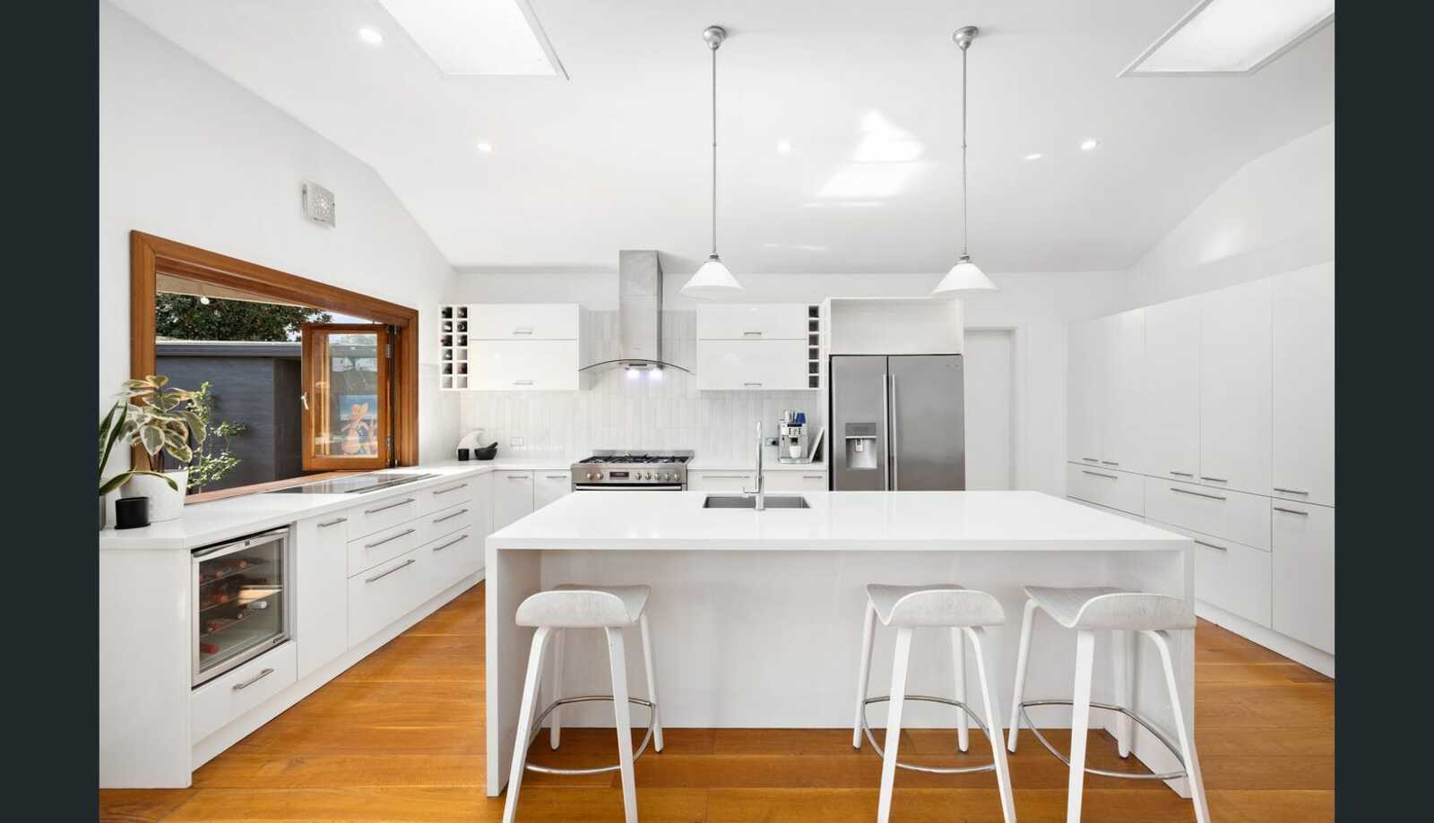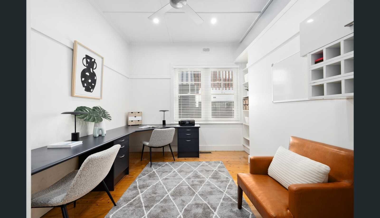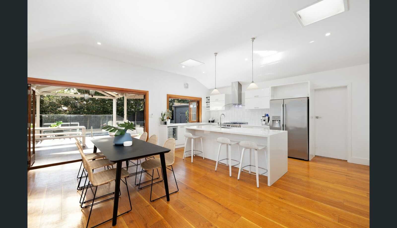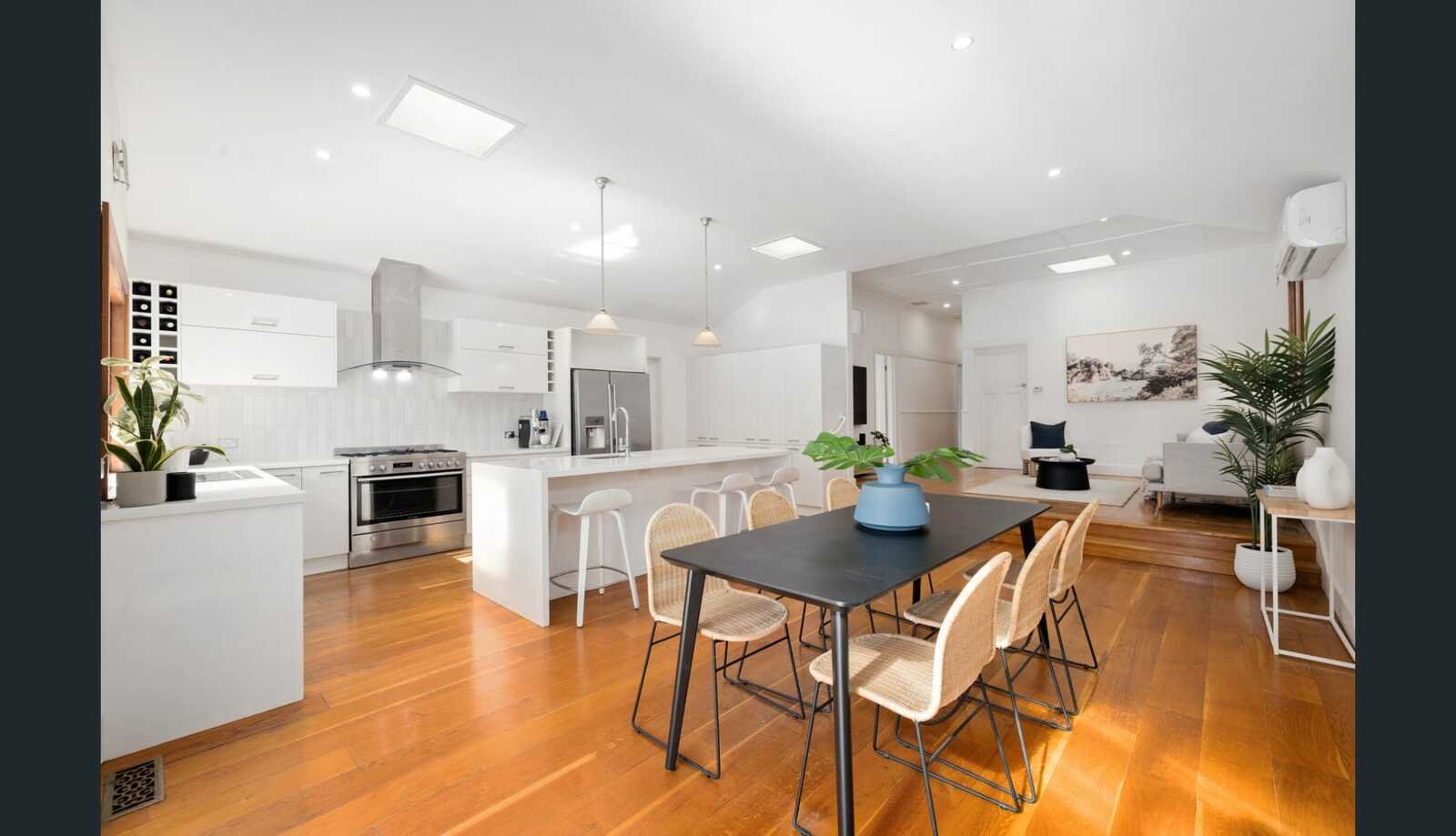 Behind its charming façade, the home reveals a thoughtfully updated interior framed by lush, low-maintenance gardens and a double undercover carport. Rich hardwood floors flow throughout the ground level, connecting a formal front lounge with high ceilings and a striking bay feature window, complemented by a separate study or home office. To the rear, a light-filled open-plan kitchen, living and dining zone creates the heart of the home, seamlessly linking indoor and outdoor living and perfectly suited to both everyday family life and entertaining.