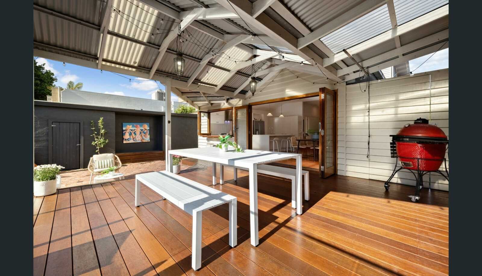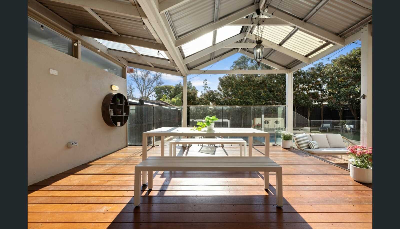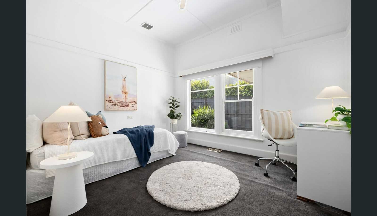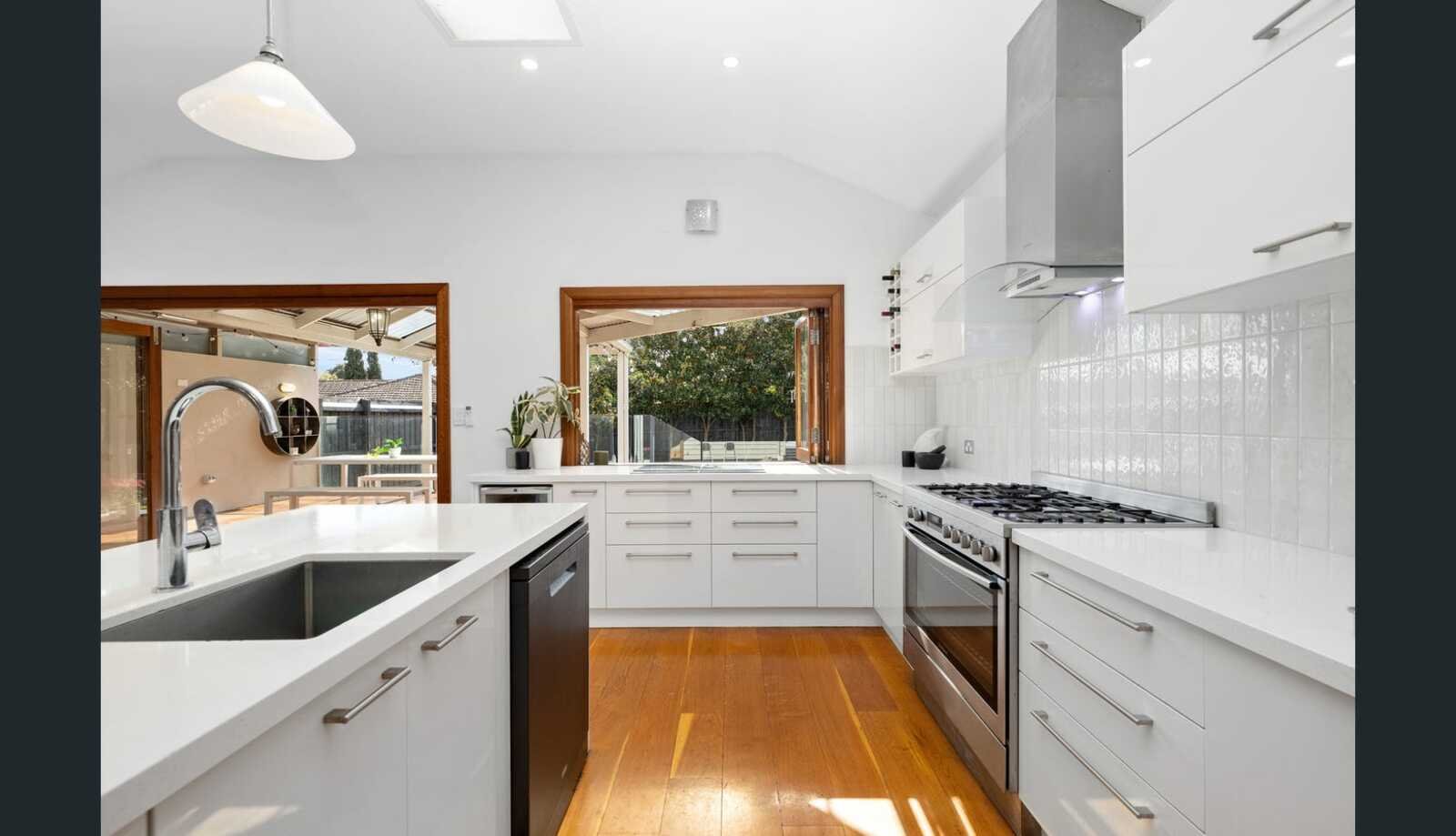 Behind its charming façade, the home reveals a thoughtfully updated interior framed by lush, low-maintenance gardens and a double undercover carport. Rich hardwood floors flow throughout the ground level, connecting a formal front lounge with high ceilings and a striking bay feature window, complemented by a separate study or home office. To the rear, a light-filled open-plan kitchen, living and dining zone creates the heart of the home, seamlessly linking indoor and outdoor living and perfectly suited to both everyday family life and entertaining.