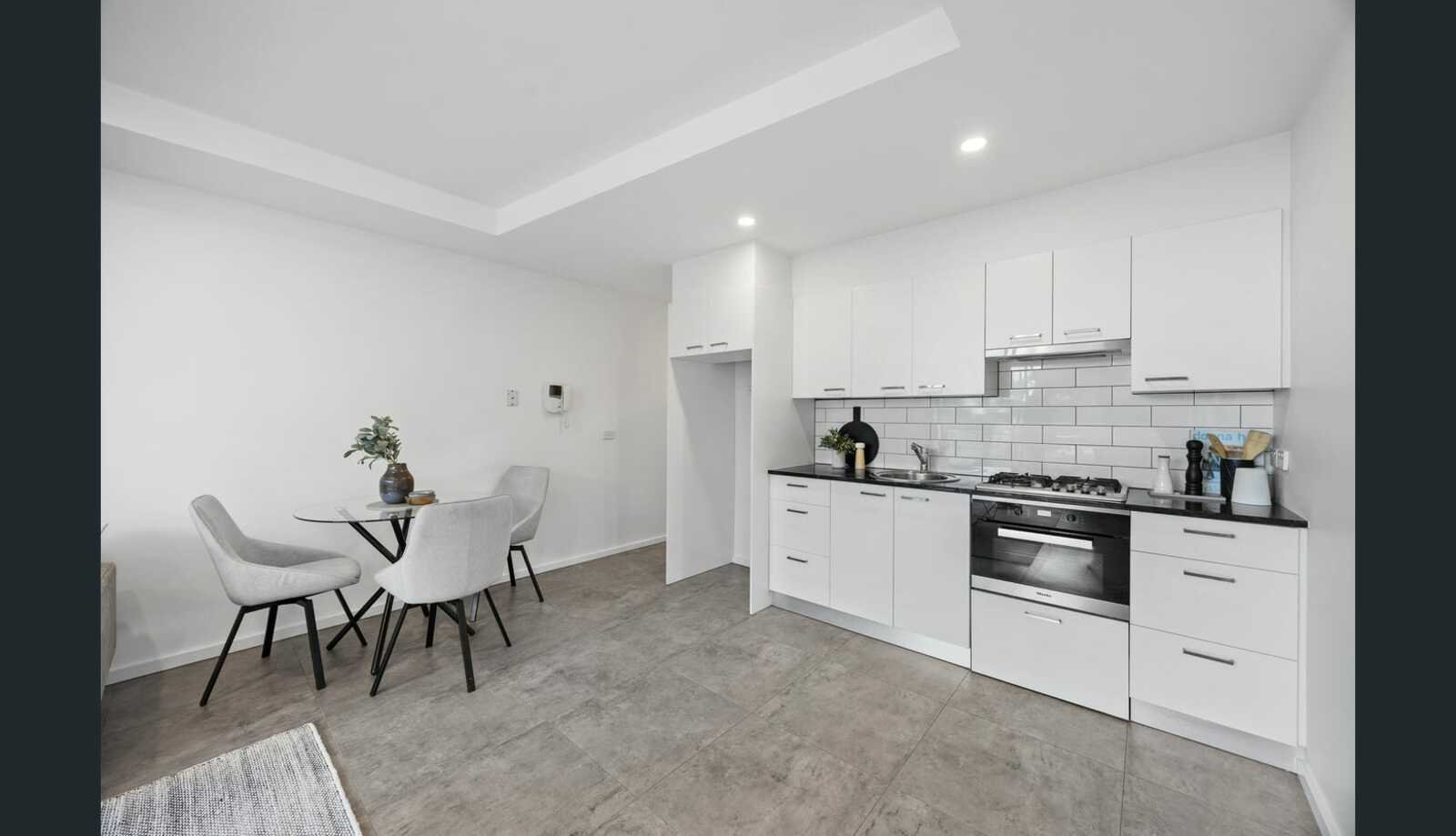 Within, free-flowing living and dining merge effortlessly with a sleek stone-topped kitchen appointed with Miele appliances and ample storage. Beyond, sliding glass doors reveal a full-width balcony - an outdoor escape where mornings linger over coffee, afternoons stretch with sea breezes, and evenings unfold against treetop outlooks and glimpses of the water.