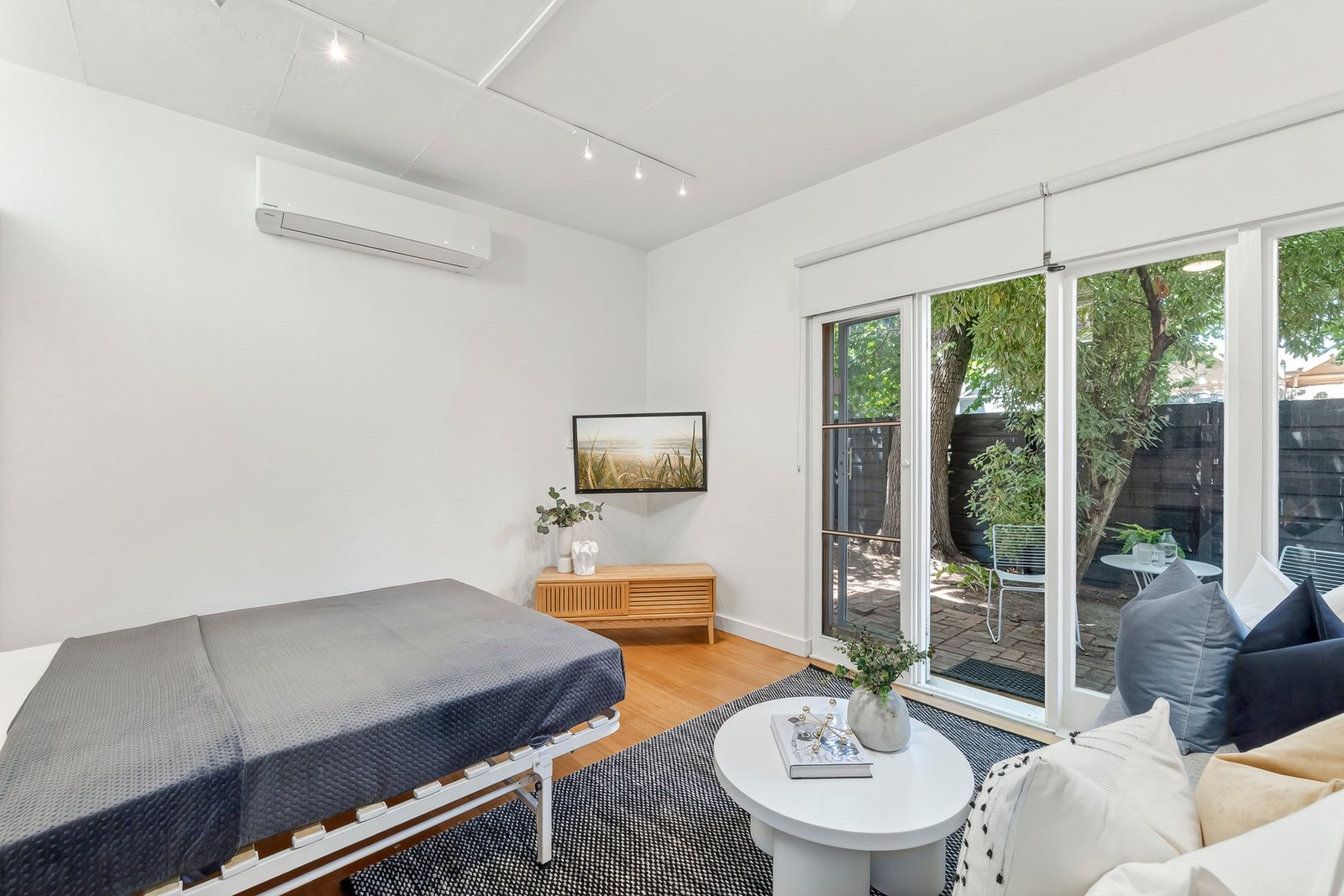 Starring split system air-con for climate control, ample storage (including custom cabinetry and a garden shed) and just as much space outside in a quiet courtyard garden setting, this beautiful studio apartment provides the perfect lock and leave lifestyle for fly-in fly out workers, a city crash pad, a sensible scale down with minimal maintenance, and an astute investment.