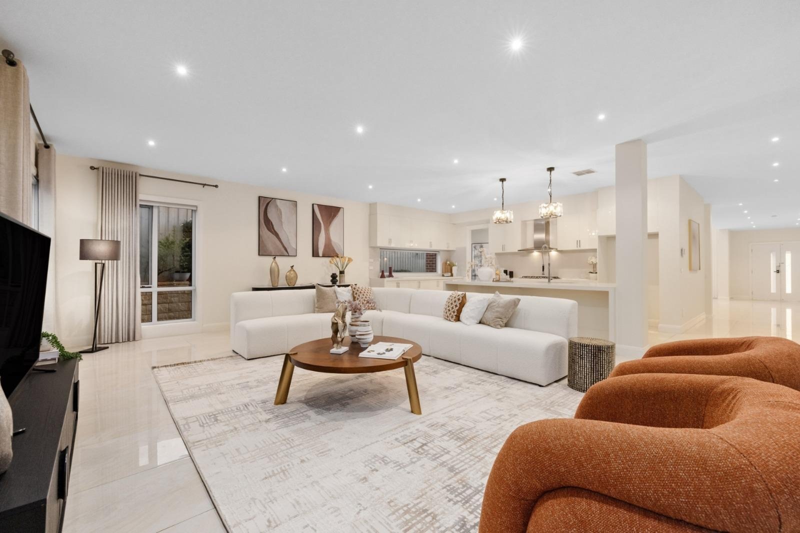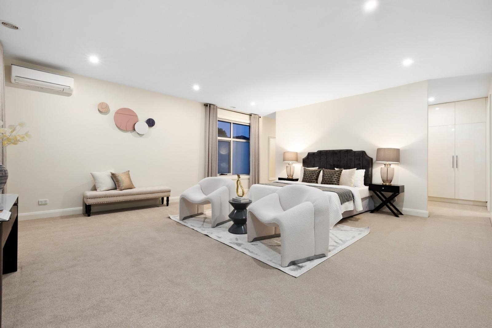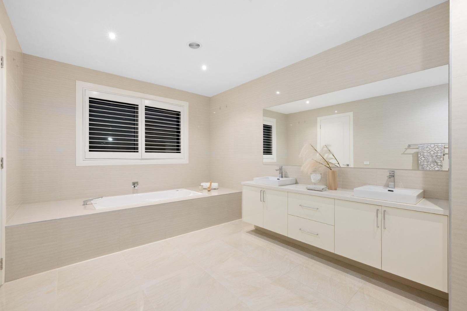 As one of the newest builds on the block, the circa 2017 build captures all the beauty of contemporary living with free-flowing open plan freedom. The expansive configuration caters to multi-generational living with a ground floor master bedroom complete with ensuite and walk-in-robe, and 4 additional king-sized bedrooms with ensuite bathrooms. Some of the home's exclusive details include mud room storage in the laundry, an automated clothes drying rack which drops down from the ceiling, picture windows with soft sheers and roller blinds assuring privacy and light control, a butler's pantry with full stone surround benches and 2nd cooking station, a regular shaped spa bath, and an easy-care garden landscaped with artificial turf and retaining walls.