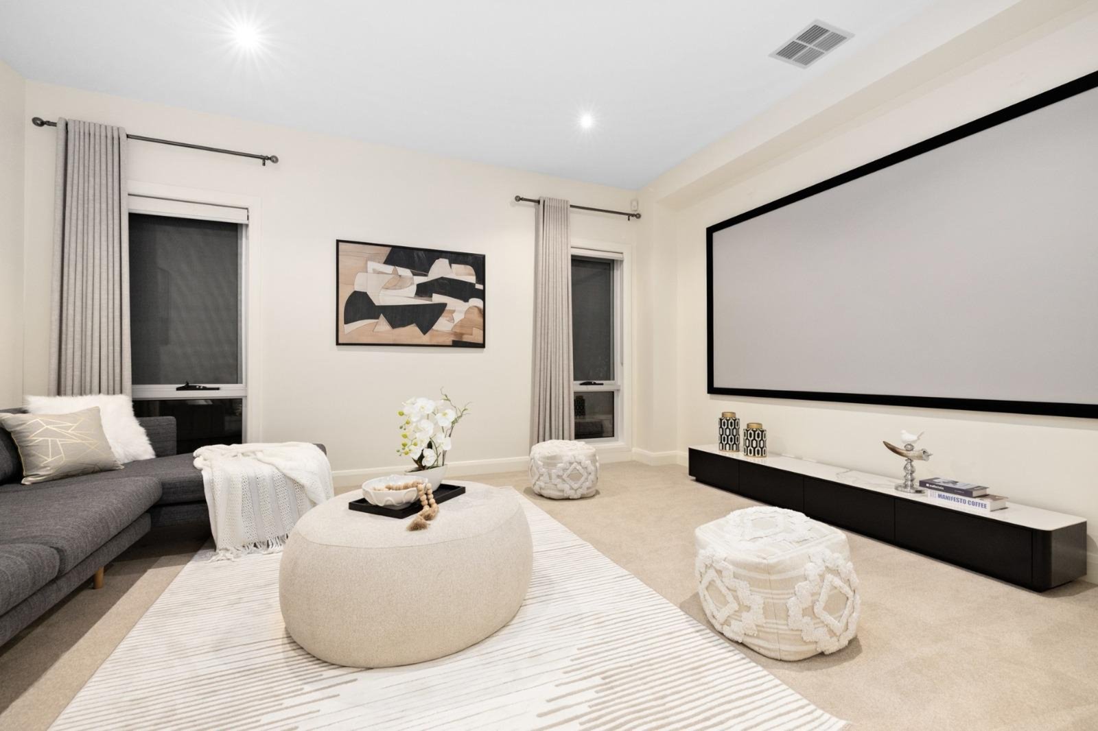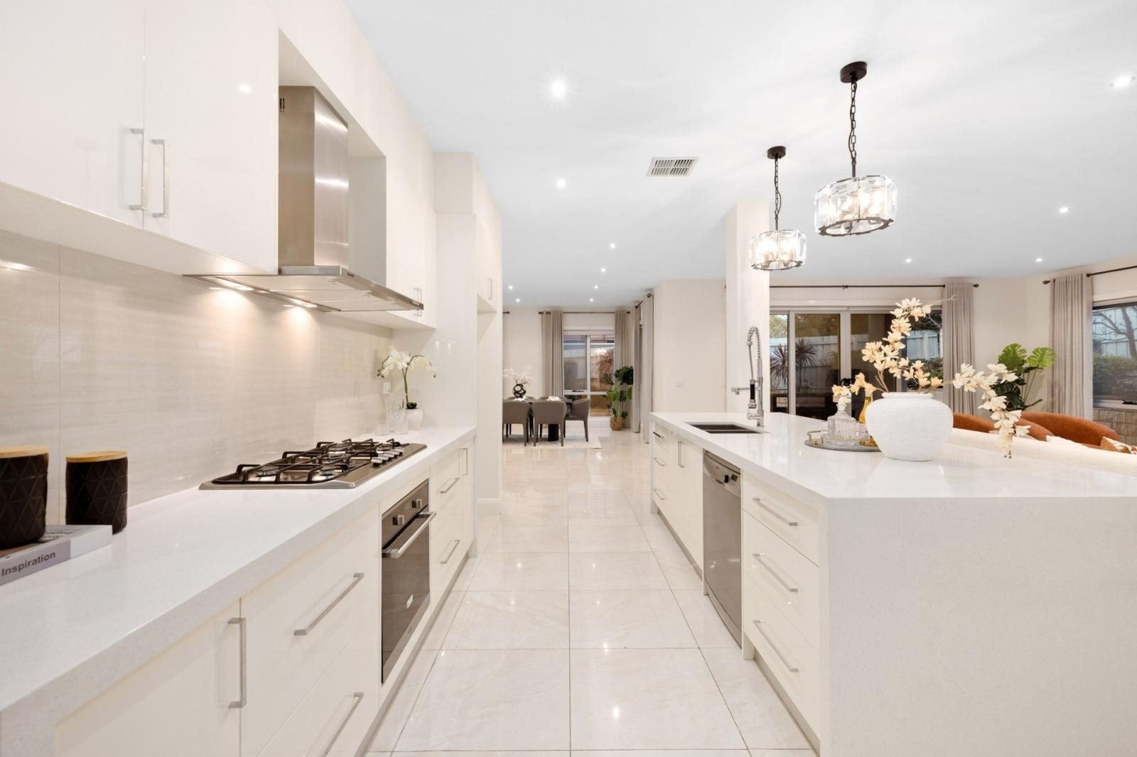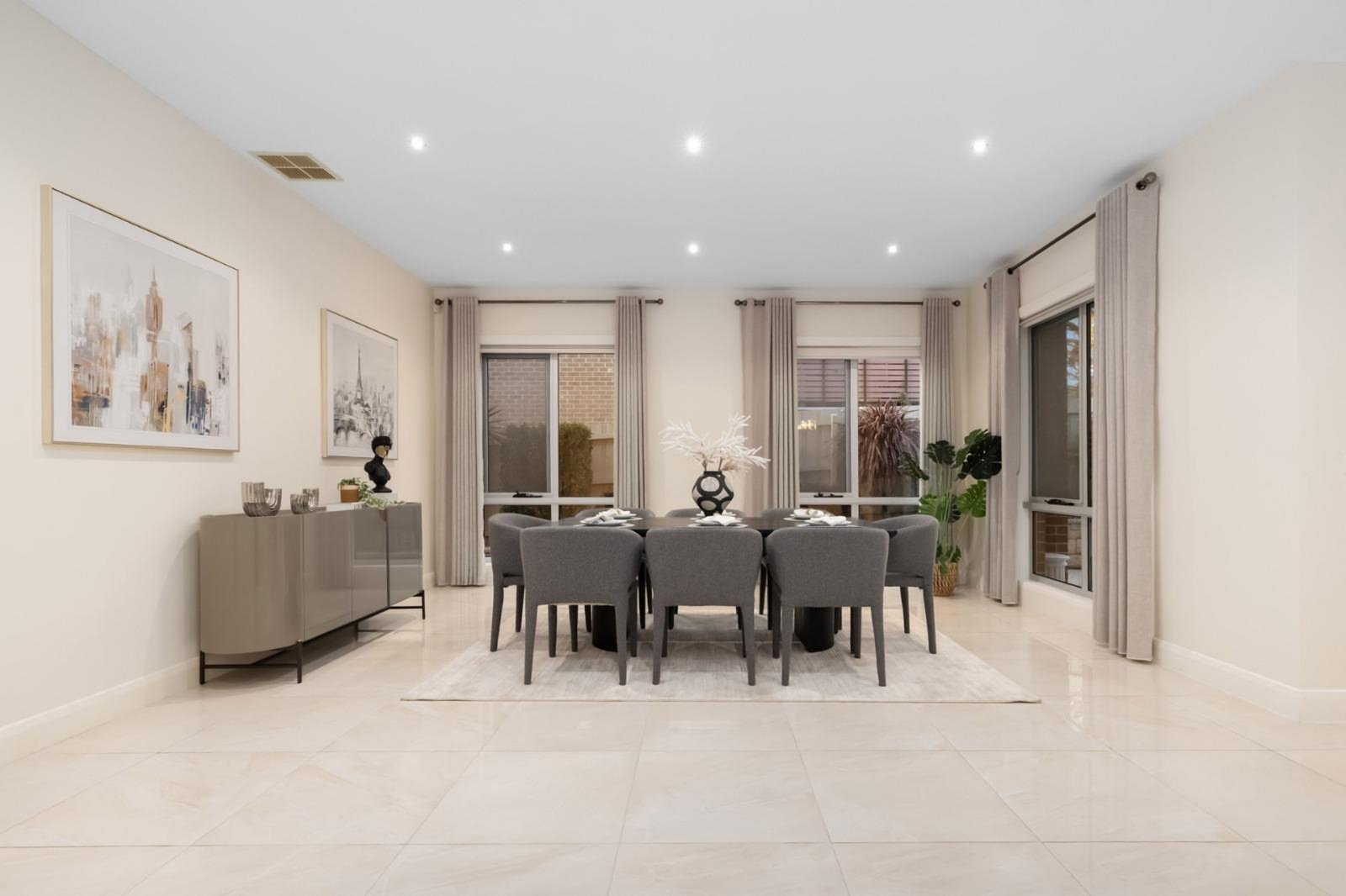 As one of the newest builds on the block, the circa 2017 build captures all the beauty of contemporary living with free-flowing open plan freedom. The expansive configuration caters to multi-generational living with a ground floor master bedroom complete with ensuite and walk-in-robe, and 4 additional king-sized bedrooms with ensuite bathrooms. Some of the home's exclusive details include mud room storage in the laundry, an automated clothes drying rack which drops down from the ceiling, picture windows with soft sheers and roller blinds assuring privacy and light control, a butler's pantry with full stone surround benches and 2nd cooking station, a regular shaped spa bath, and an easy-care garden landscaped with artificial turf and retaining walls.