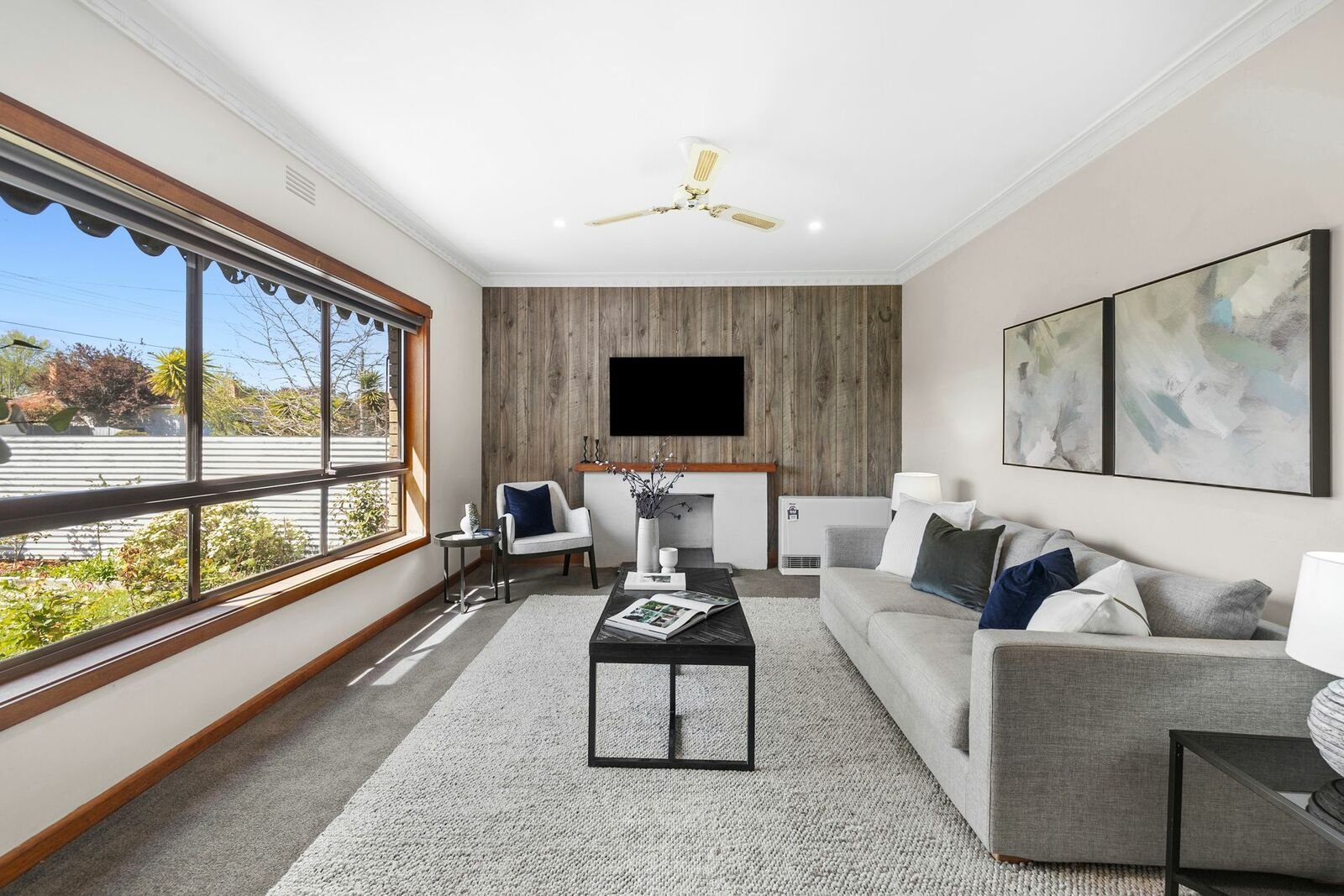 - Electric heater in loungeroom and ceiling fan