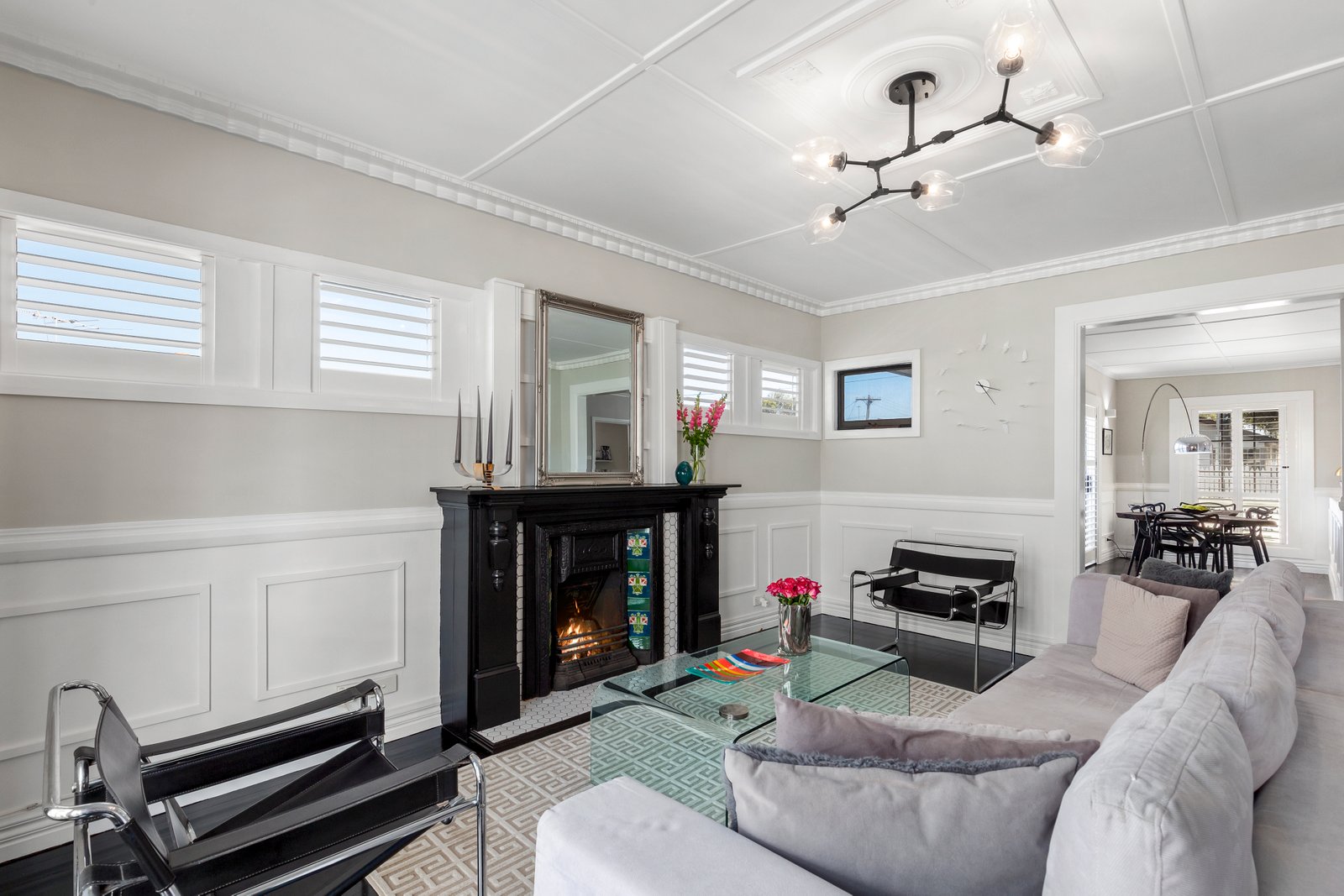 - Adjoining lounge and dining rooms with a striking ornamental fireplace, complete with split system for comfort