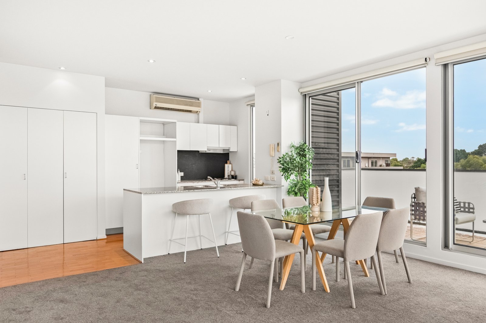 Proudly positioned on the top floor and framed by expansive, north-facing wraparound terraces, this generously proportioned two-bedroom residence delivers an exceptional indoor-outdoor lifestyle defined by space, light and everyday convenience. Enjoying an elevated entertaining vantage overlooking the city skyline, this home is perfectly situated just off Carlisle Street, placing you just metres from local cafés, transport and parklands.