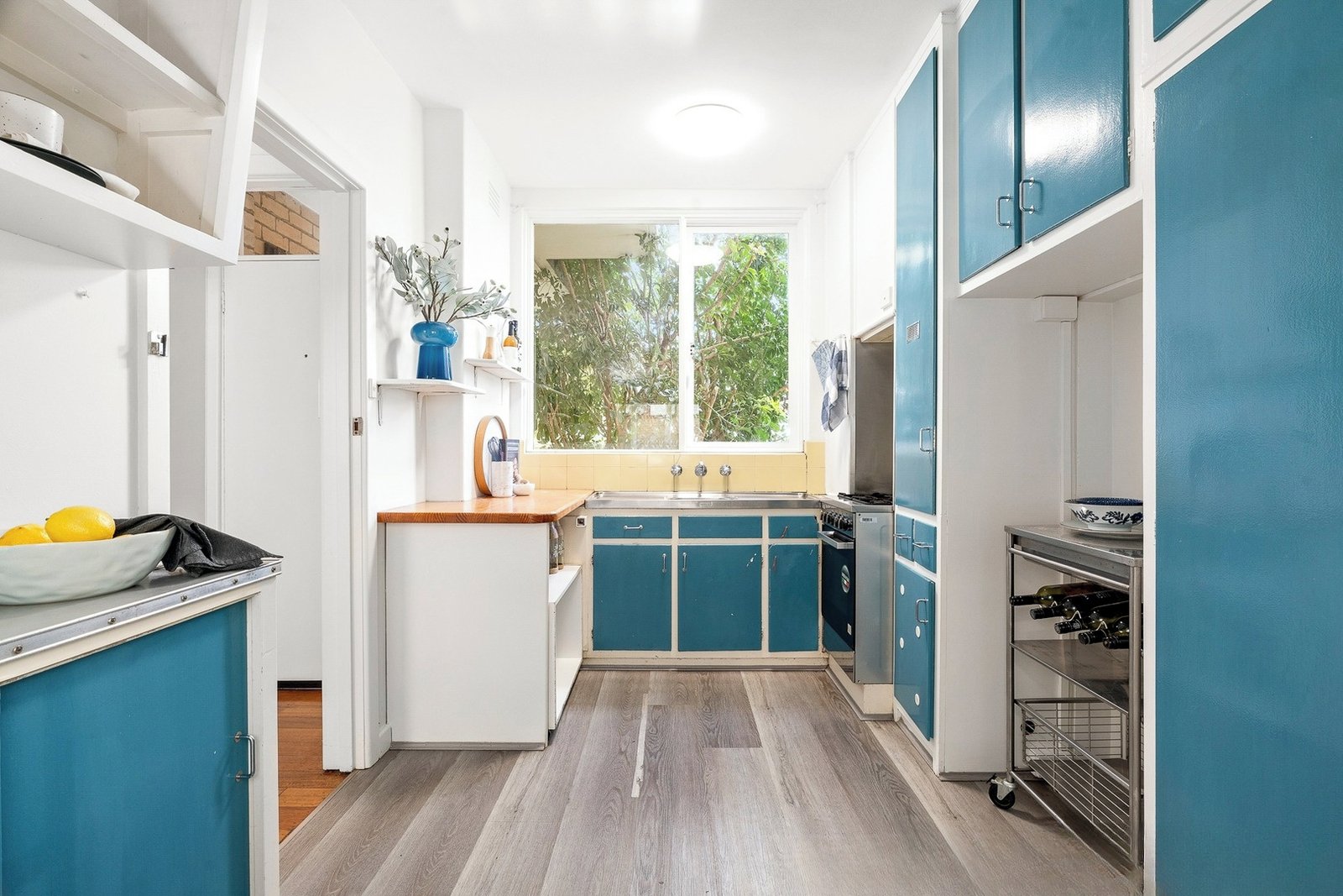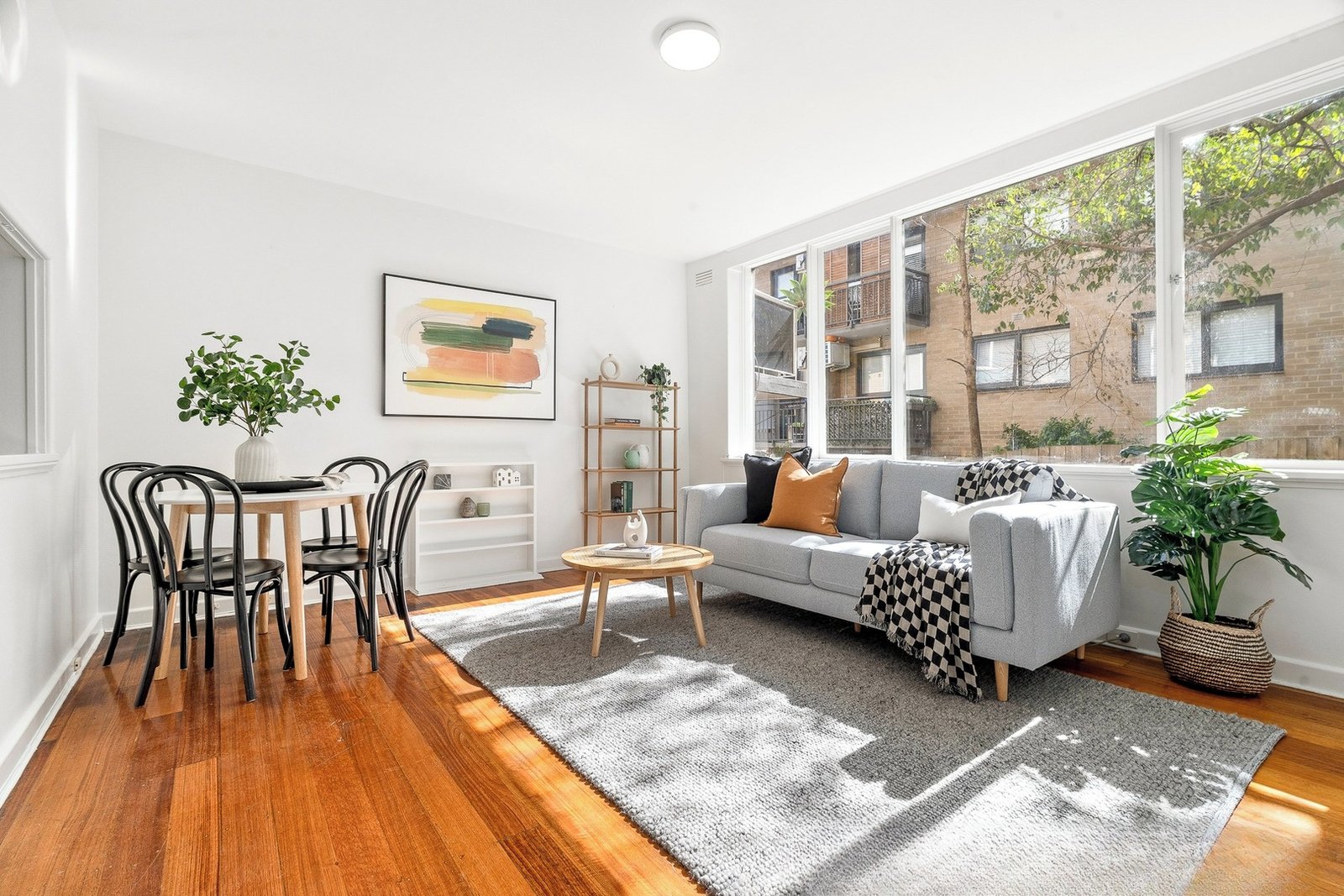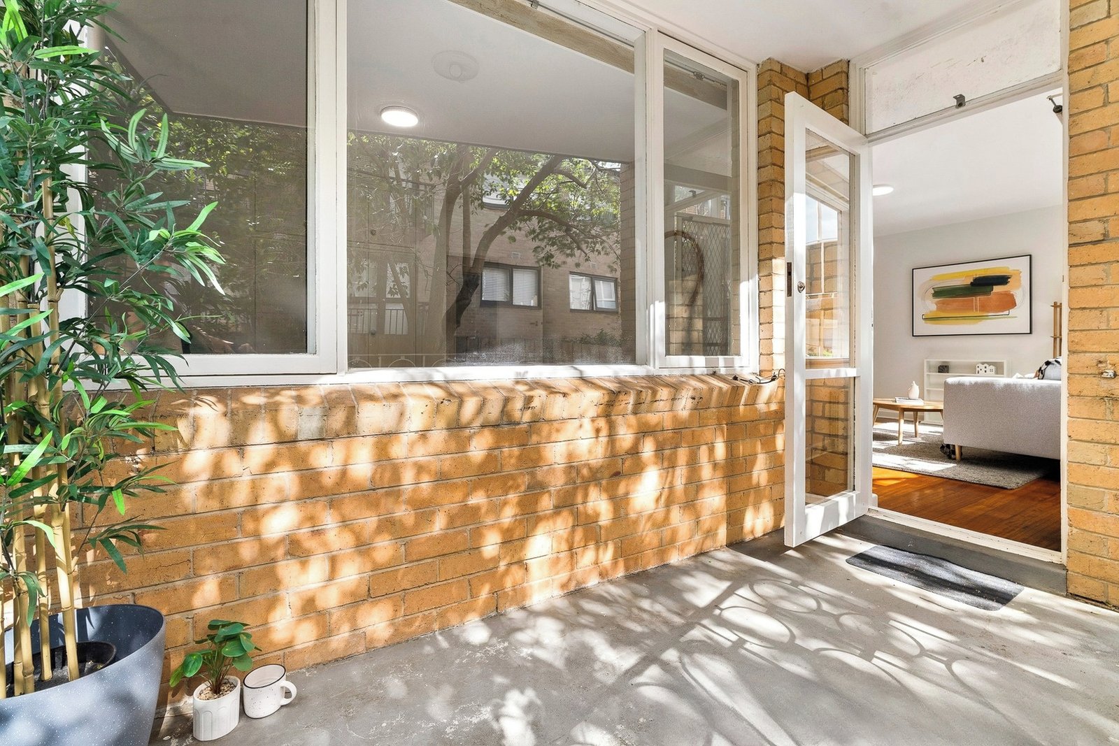 Opposite the St Kilda Botanical Gardens, this north-facing, elevated ground-floor two-bedroom apartment in the iconic mid-century modern ‘Park View’ building is a coveted original brimming with character.
