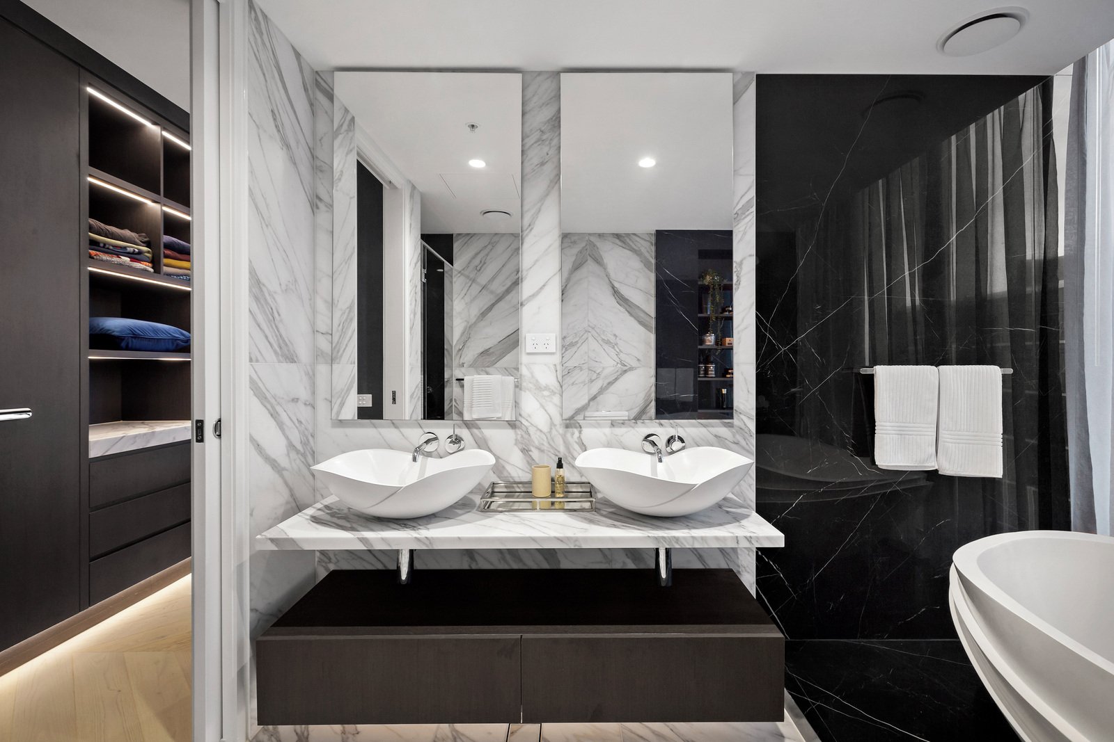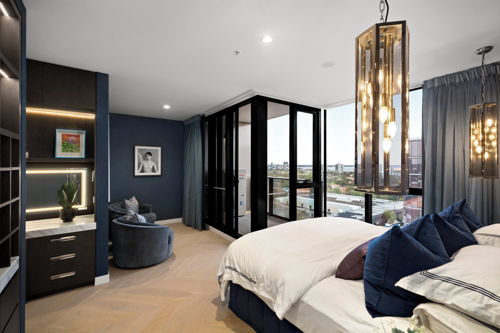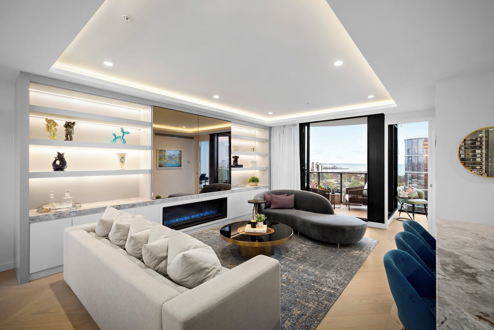 Commanding breathtaking panoramic views across Port Phillip Bay, the city skyline and distant mountain ranges, the residence has been meticulously curated to balance architectural drama with effortless day-to-day comfort.