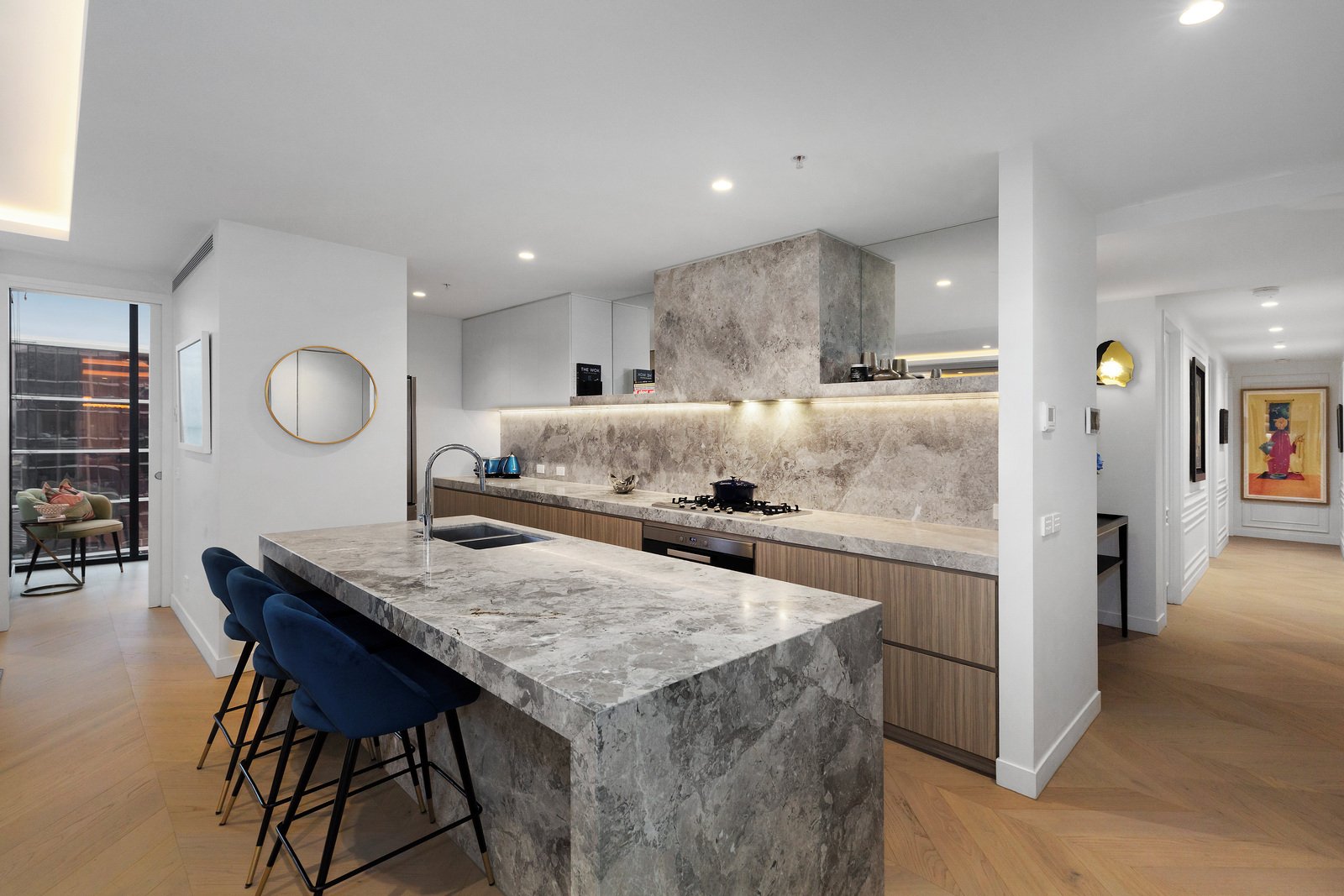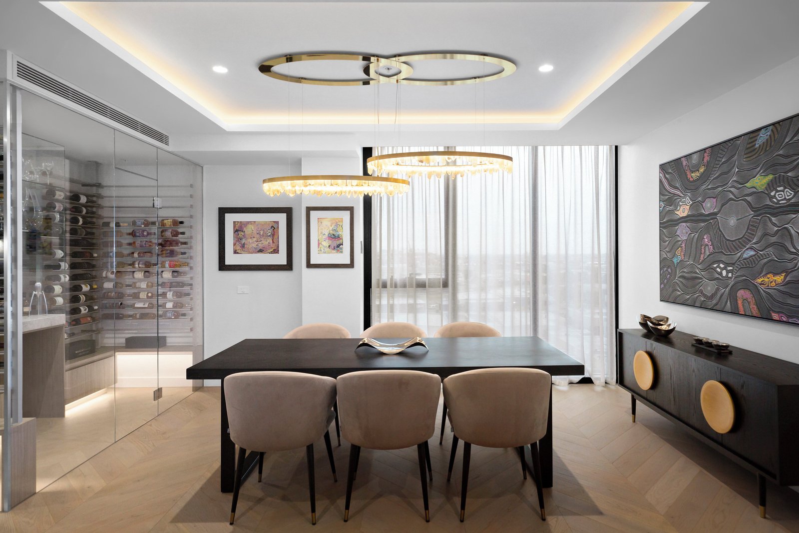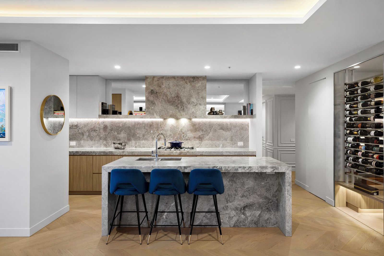 Commanding breathtaking panoramic views across Port Phillip Bay, the city skyline and distant mountain ranges, the residence has been meticulously curated to balance architectural drama with effortless day-to-day comfort.