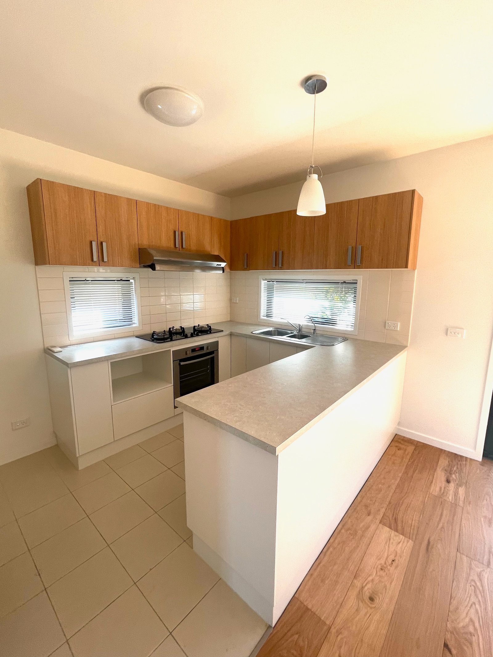 - Open plan living/dining area with contemporary kitchen that includes a breakfast bar and stainless-steel cooking appliances