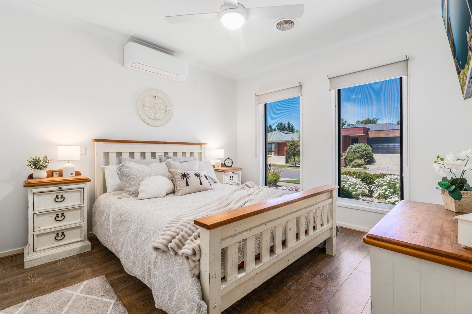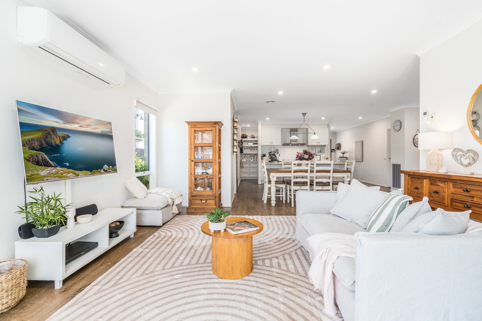 Year-round comfort is assured with gas ducted heating, two reverse-cycle split systems and ceiling fans, while the double garage with internal access adds everyday ease.