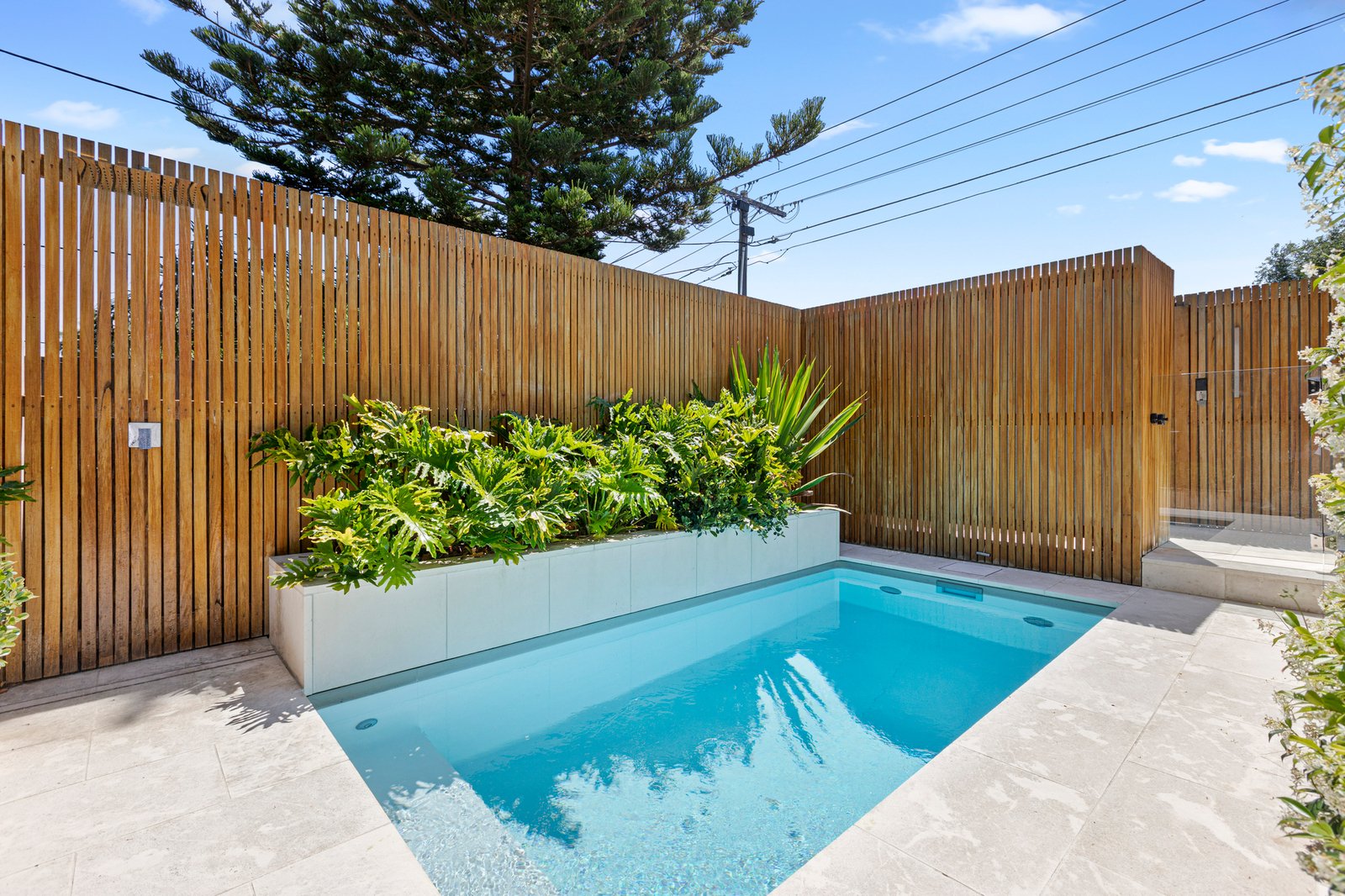 Making a huge first impression, an exceptional outdoor offering, the home opens to a private, landscaped terrace ideal for alfresco dining and everyday relaxation. Framed by mature planting and architectural timber screening, the outdoor space is further enhanced by a stunning plunge pool, delivering a resort-style experience in complete privacy.