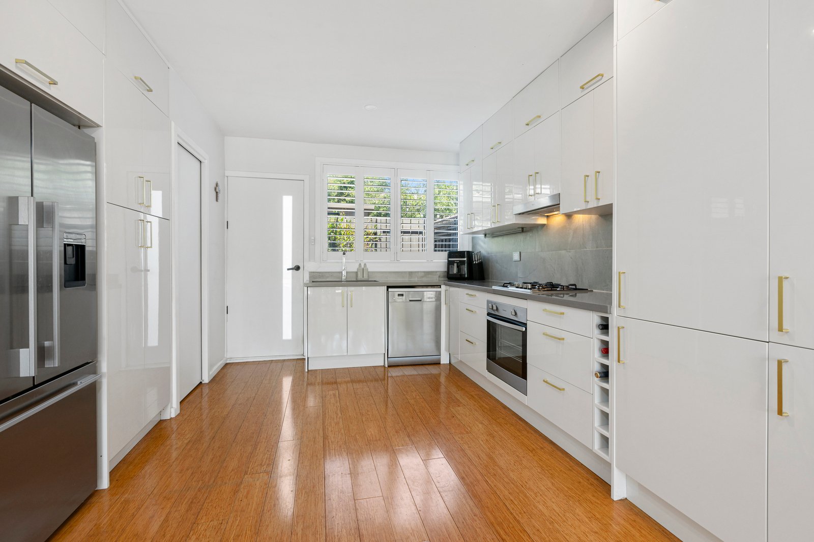 From here, head inside the beautifully updated residence where an entire wall of bi-fold doors seamlessly connects the courtyard to the welcoming open plan living/dining zone, creating an indoor/outdoor entertaining area to envy. A stylish and well-appointed kitchen makes hosting easy – showcasing sleek stone benchtops and equipped with premium appliances and substantial storage & preparation space, it is a setting sure to please even the fussiest of chefs.