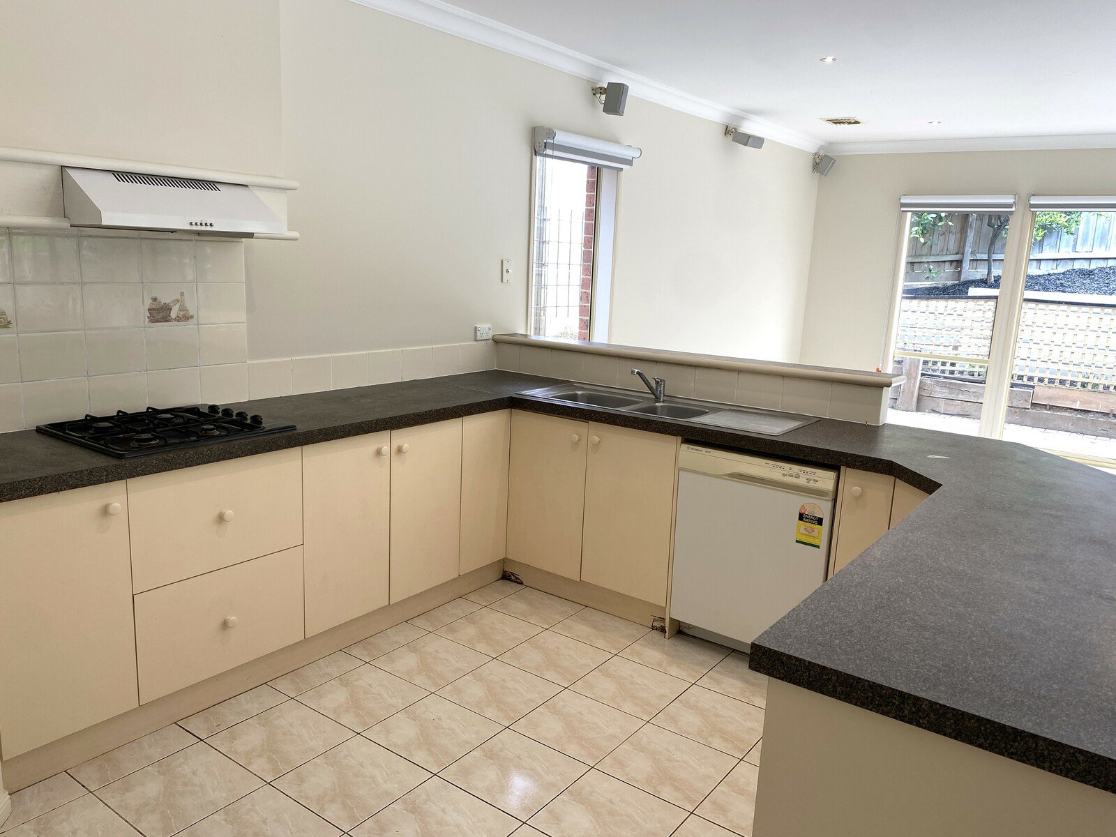 - Kitchen with ample storage, gas stove, electric oven and dishwasher