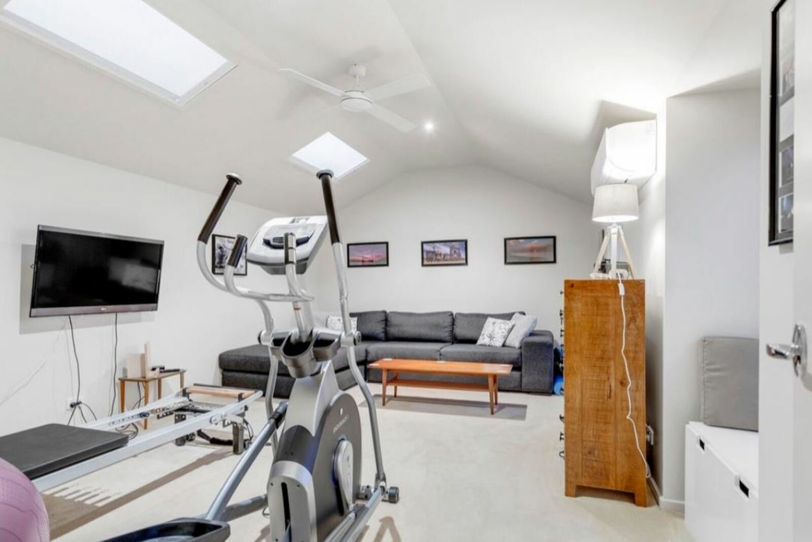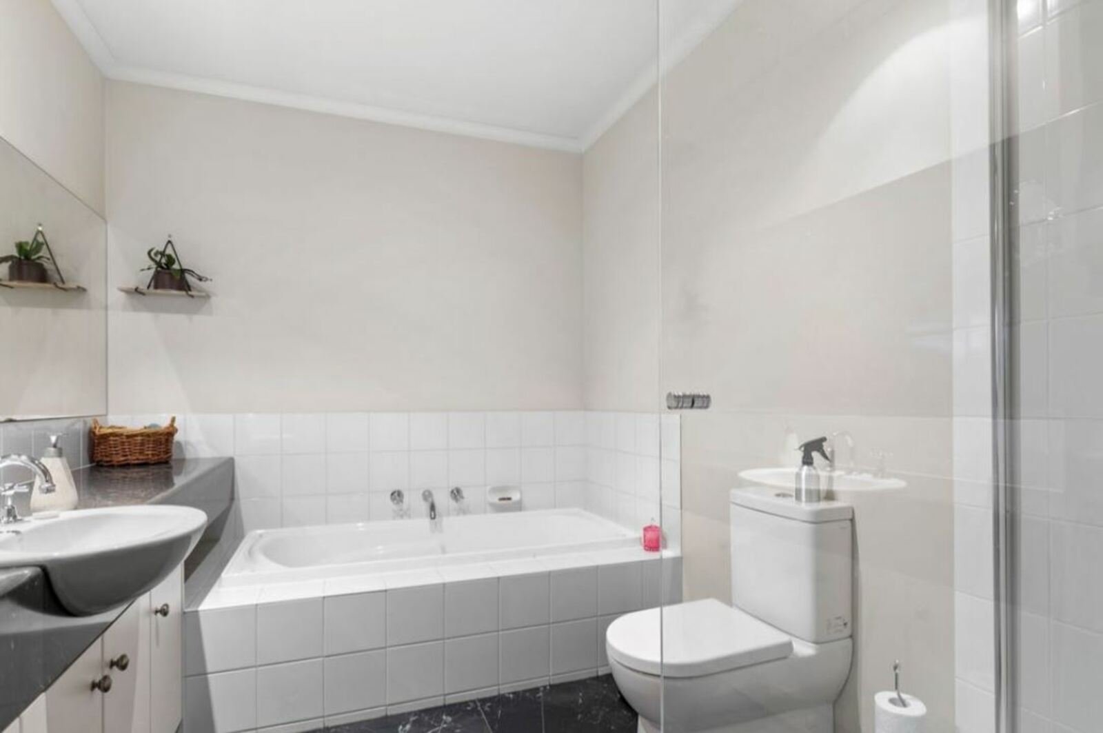 Upstairs accommodation comprises three well-proportioned bedrooms, all featuring built-in robes. The main bedroom includes its own ensuite, while the central bathroom is modern and well finished. A separate powder room adds convenience.