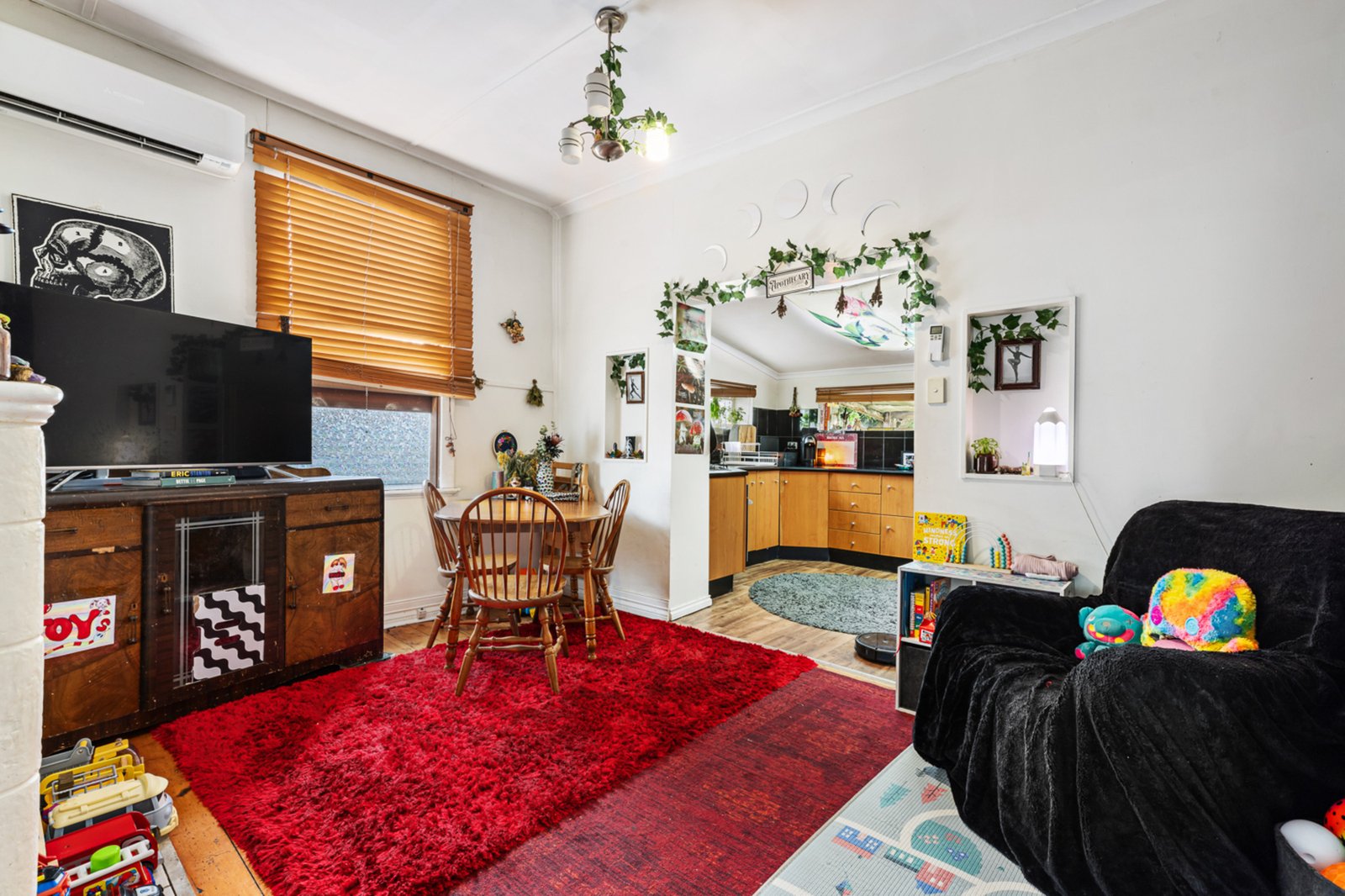 Step inside to discover the living space, featuring beautiful timber floorboards throughout the...